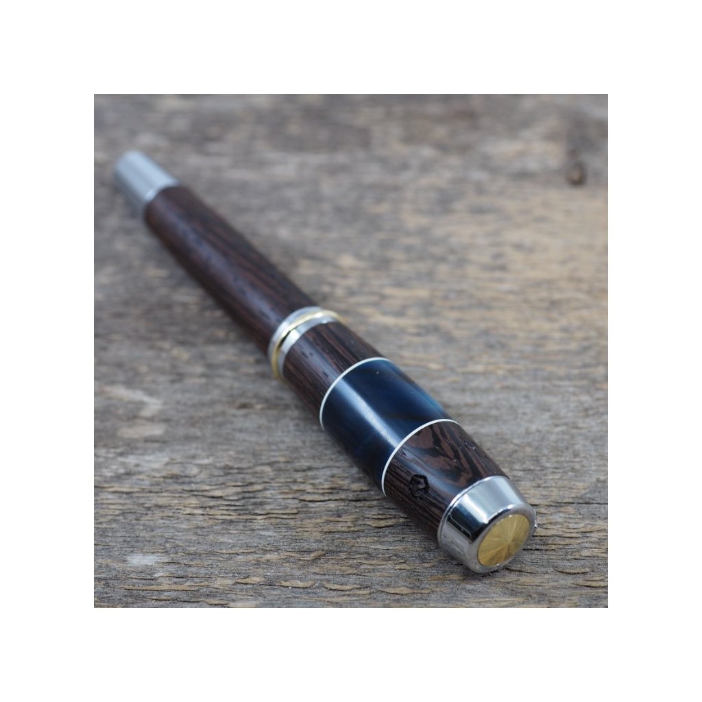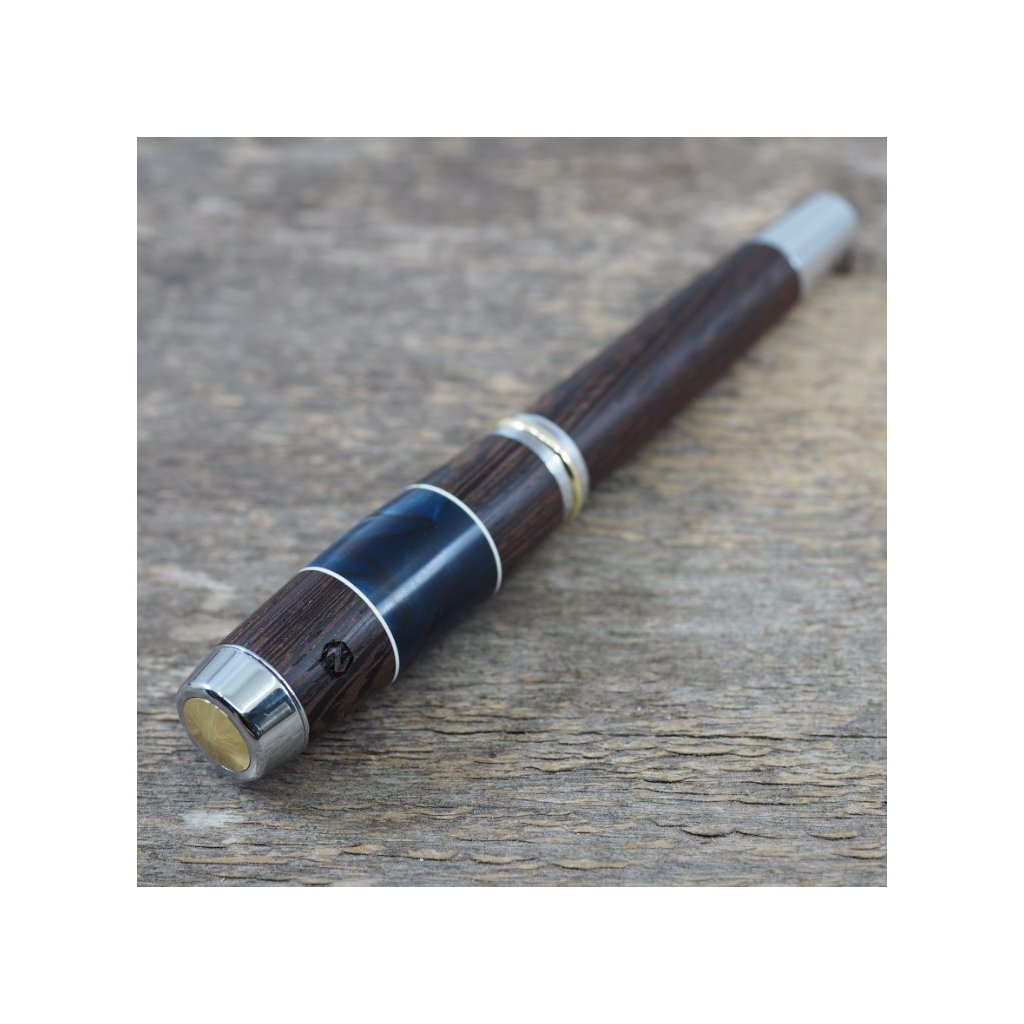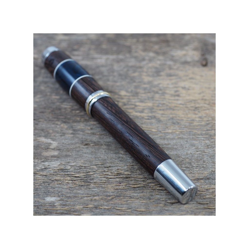 Kuličkové pero Portland L z exotického dřevaWenge a modrého akrylu jsem vytvořil pro větší ruce nebo pro milovníky těžších a mohutnějších psacích perDo pera se vkládají běžné náplně, a aby bylo pero skutečným originálem, můžete si na něj nechat vygravírovat vzkaz, monogram, významné datum, jméno nebo přezdívku, logo firmy a mnohé další. Inspiraci najdete v ukázkách gravírování.
