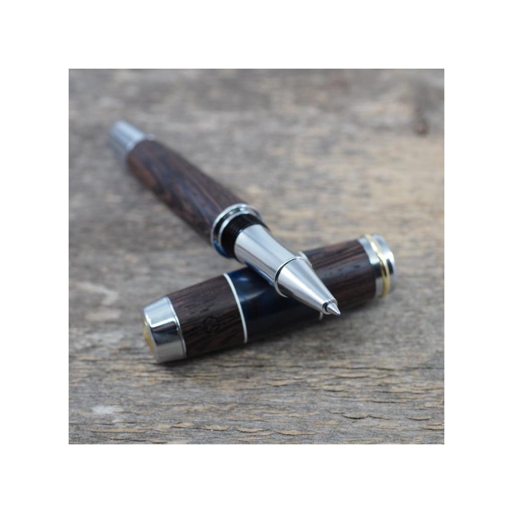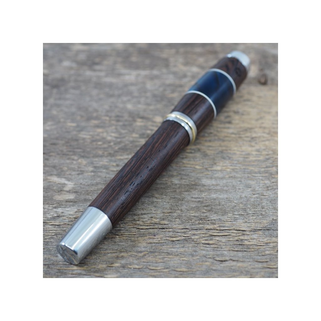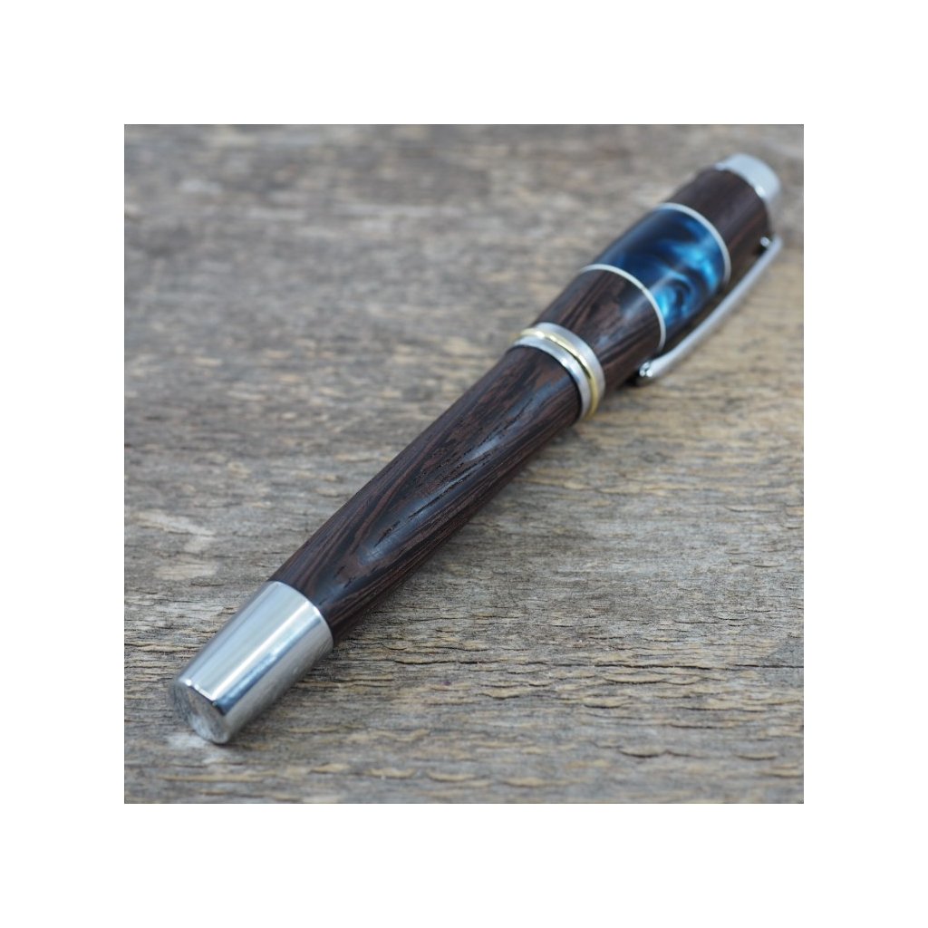 Luxusní ručně vyrobené kuličkové pero Portland L z exotického dřeva Wenge v kombinaci s modrým akrylovým proužkem. Víčko pera je šroubovací, takže dobře drží, a kovové komponenty se lesknou stříbrně. Pero se hodí pro psaní poznámek při obchodních jednáních a na schůzkách, ale také pro krasopisné zaznamenávání událostí do deníčků a diářů. Kuličkové pero je baleno v luxusní dárkové krabičce s přiloženým certifikátem pravosti.