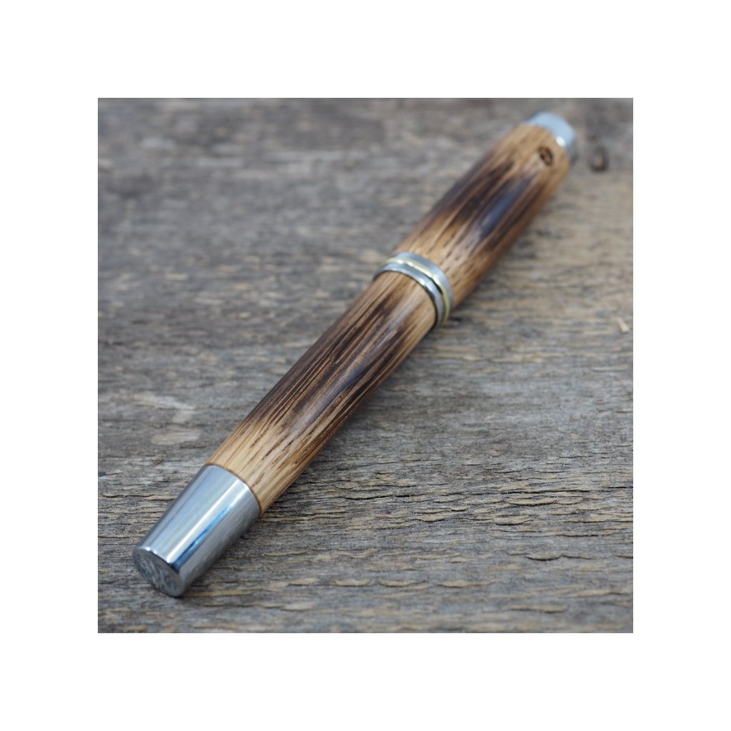 Luxusní ručně vyrobené kuličkové pero Portland L ze dřeva dubu z českých lesů. Díky opálení a následnému obroušení a vyleštění dostane pero krásnou patinu. Víčko pera je šroubovací, takže dobře drží, a kovové komponenty se lesknou stříbrně. Pero se hodí pro psaní poznámek při obchodních jednáních a na schůzkách, ale také pro krasopisné zaznamenávání událostí do deníčků a diářů. Kuličkové pero je baleno v luxusní dárkové krabičce s přiloženým certifikátem pravosti.