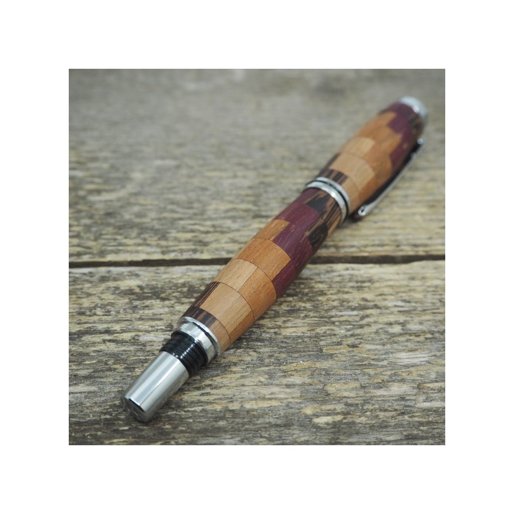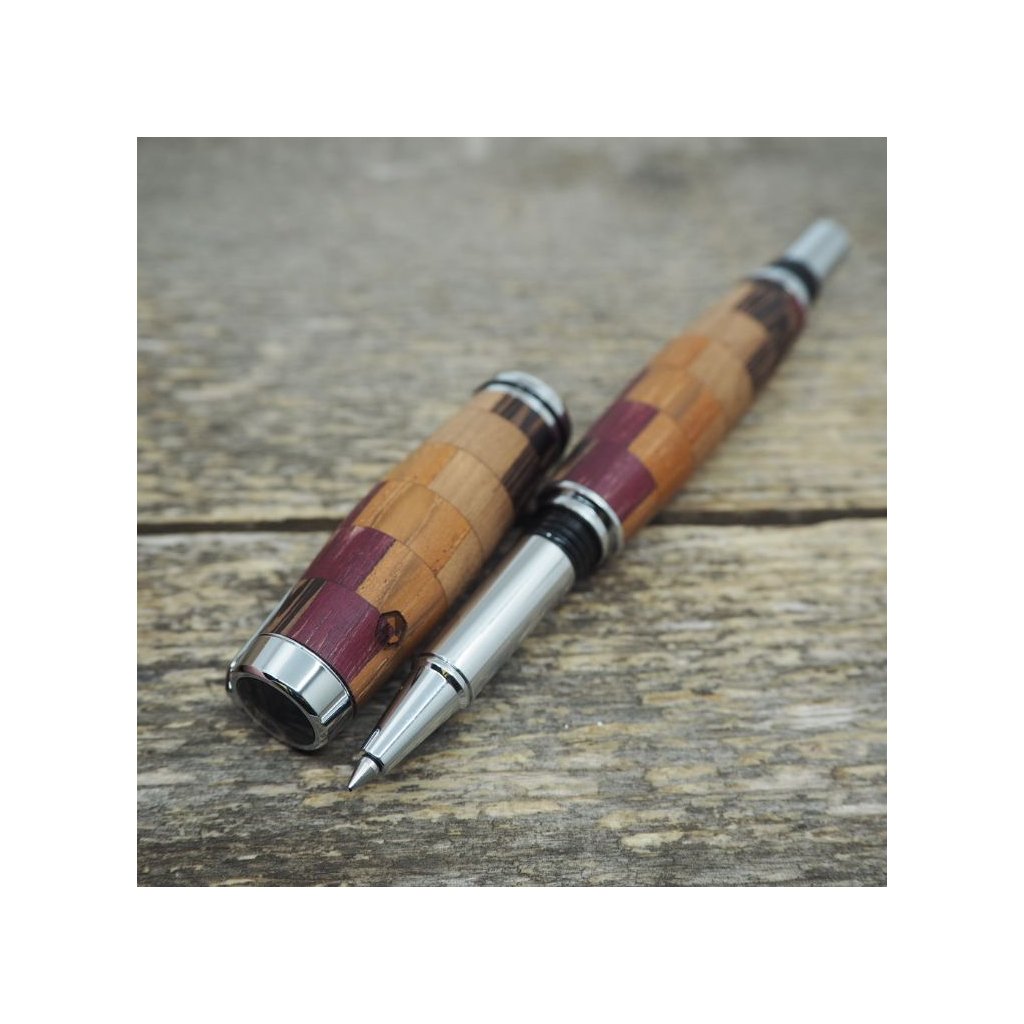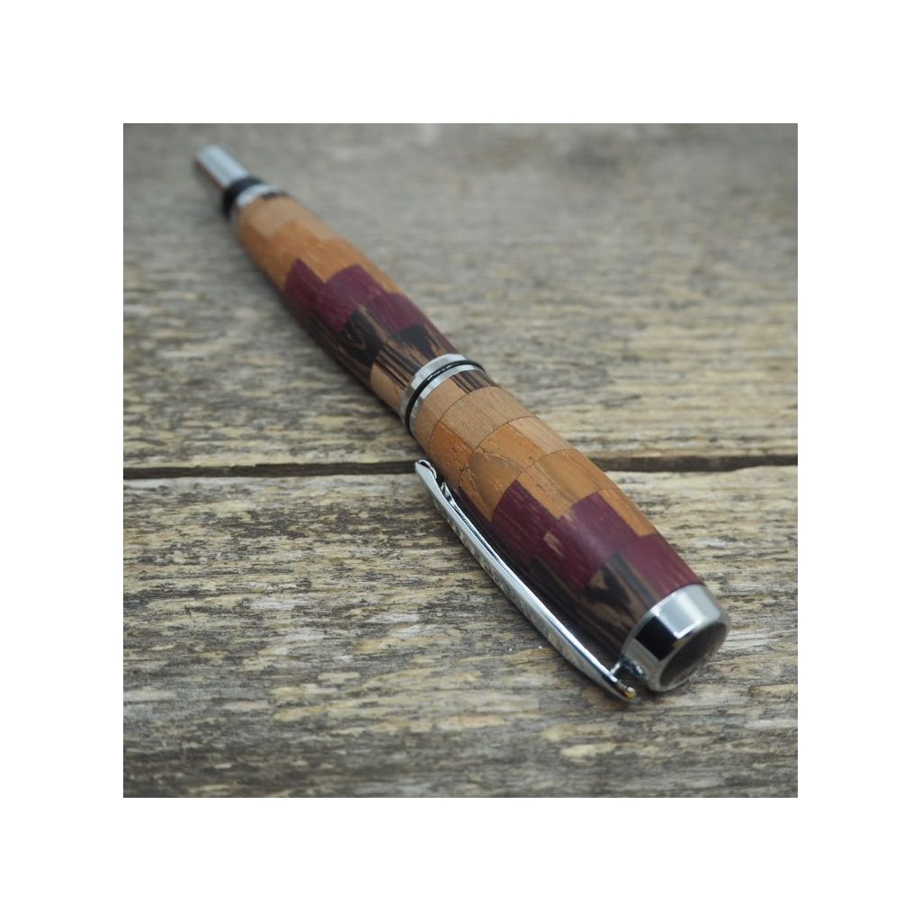 Luxusní ručně vyrobené kuličkové pero Portland S z kostiček exotických dřev Amaranthu, Wenge, Teaku a Amerického ořechu. Víčko pera je šroubovací, takže dobře drží, a kovové komponenty se lesknou stříbrně. Pero se hodí pro psaní poznámek při obchodních jednáních a na schůzkách, ale také pro krasopisné zaznamenávání událostí do deníčků a diářů. Kuličkové pero je baleno v luxusní dárkové krabičce s přiloženým certifikátem pravosti.