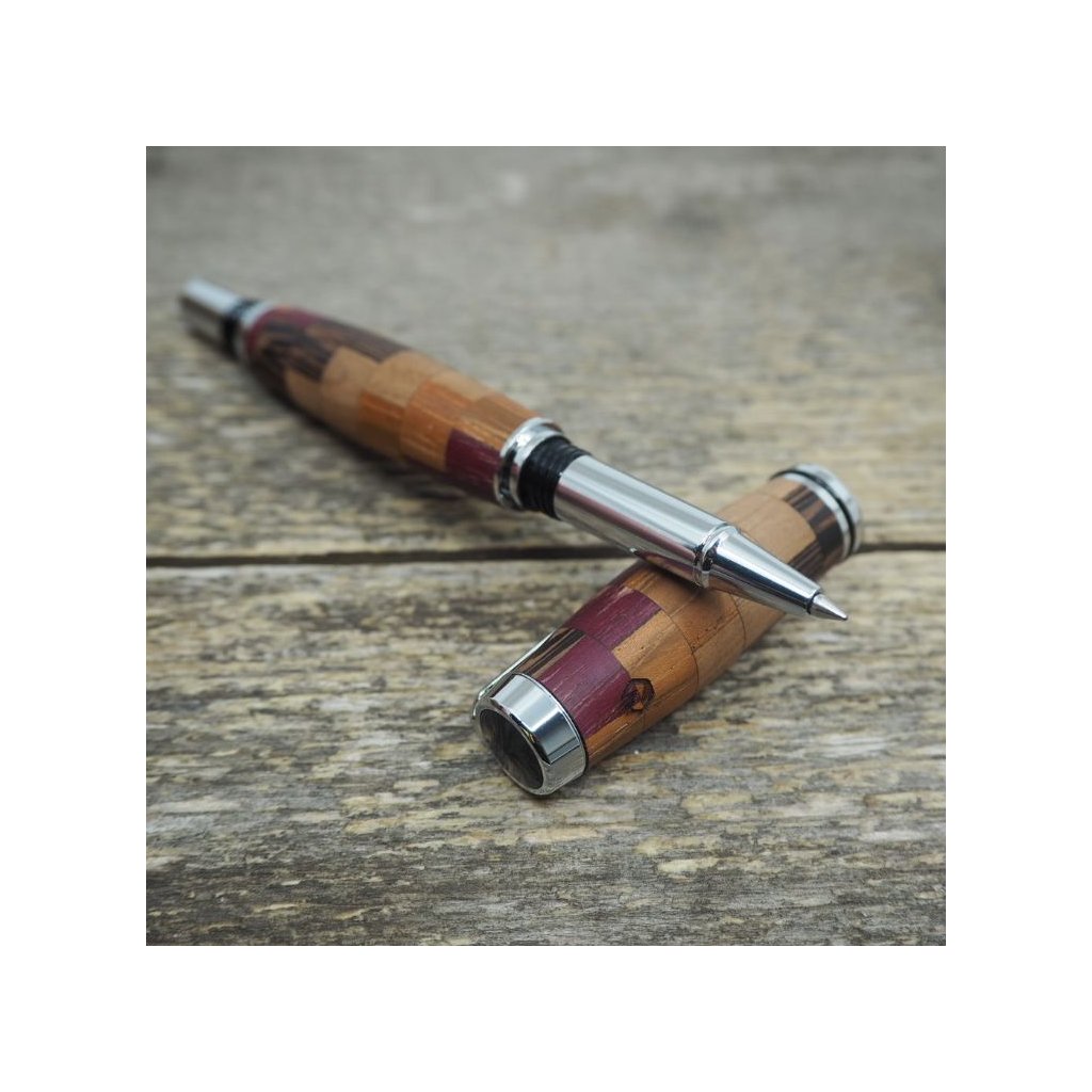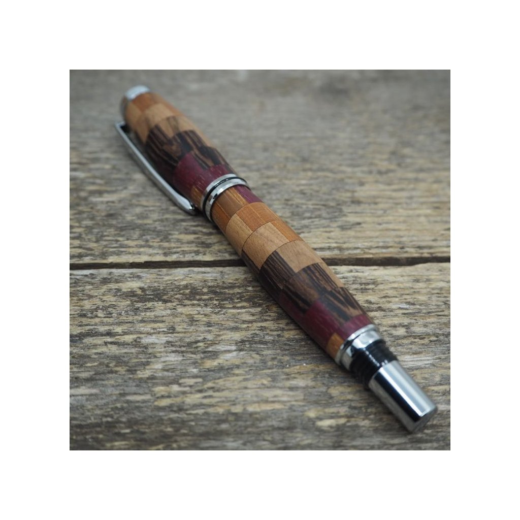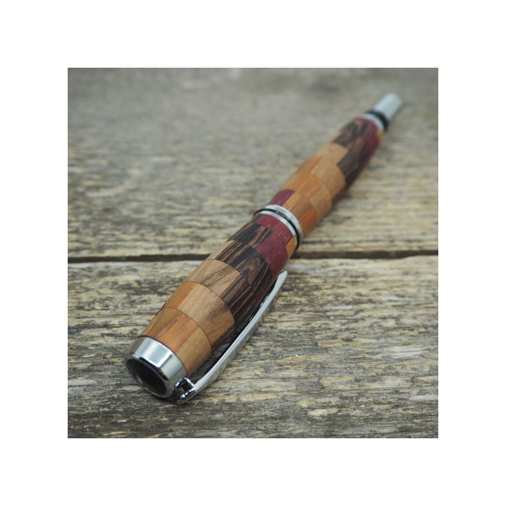 Luxusní ručně vyrobené kuličkové pero Portland S z kostiček exotických dřev Amaranthu, Wenge, Teaku a Amerického ořechu. Víčko pera je šroubovací, takže dobře drží, a kovové komponenty se lesknou stříbrně. Pero se hodí pro psaní poznámek při obchodních jednáních a na schůzkách, ale také pro krasopisné zaznamenávání událostí do deníčků a diářů. Kuličkové pero je baleno v luxusní dárkové krabičce s přiloženým certifikátem pravosti.