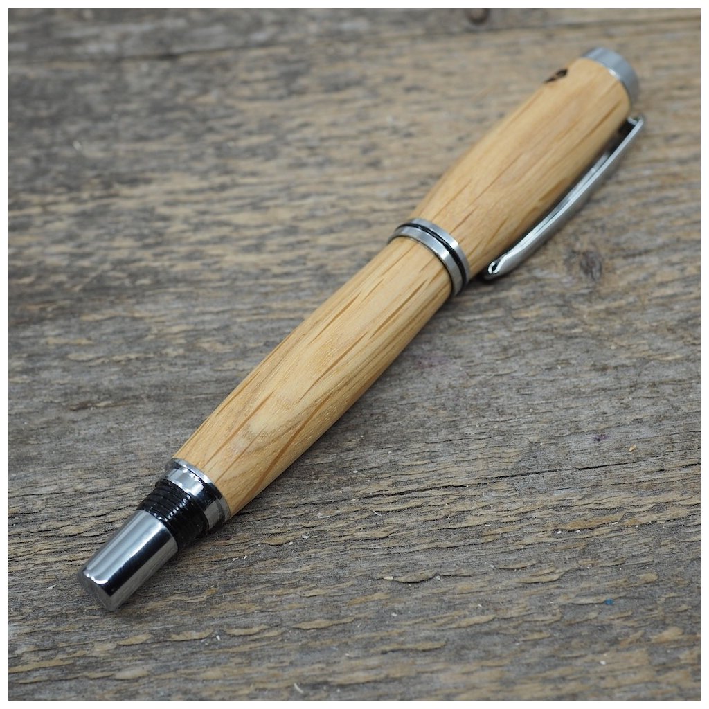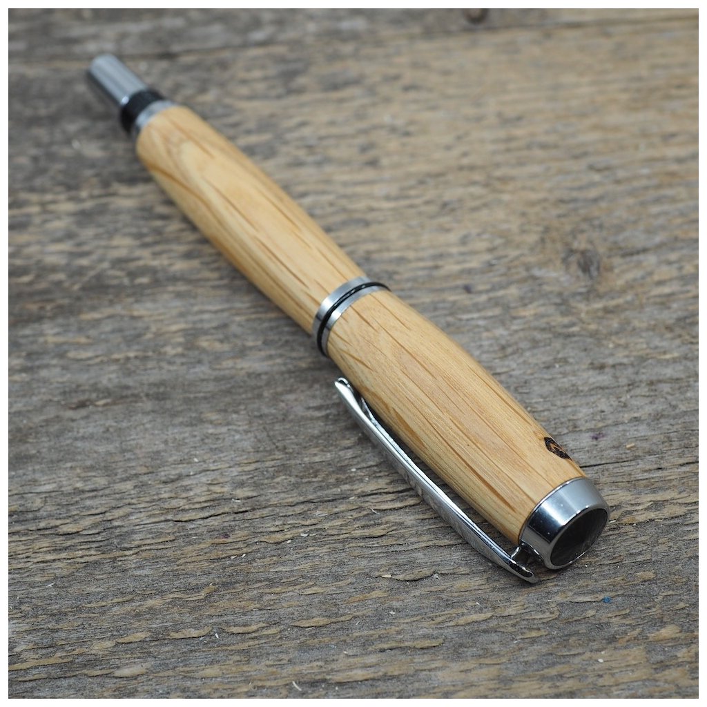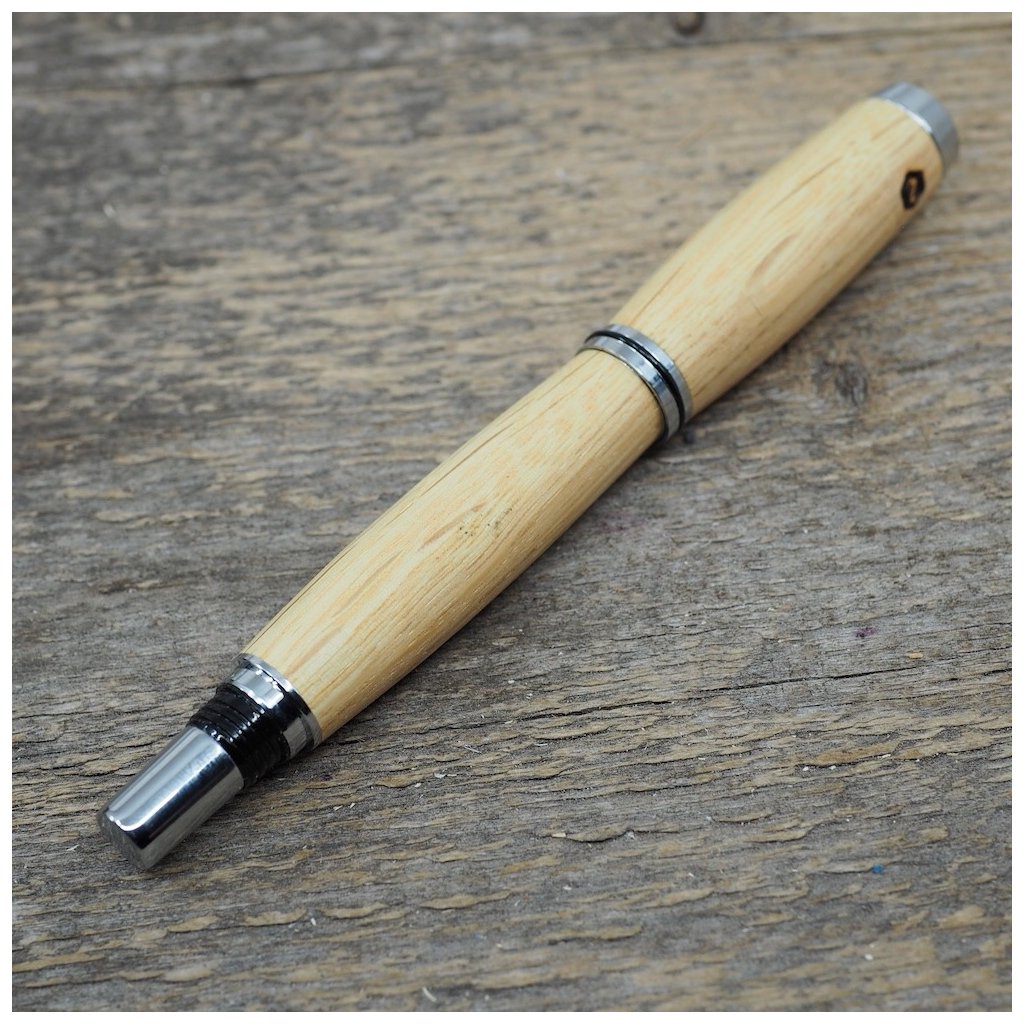 Luxusní ručně vyrobené kuličkové pero Portland S ze dřeva dubu z českých lesů. Víčko pera je šroubovací, takže dobře drží, a kovové komponenty se lesknou stříbrně. Pero se hodí pro psaní poznámek při obchodních jednáních a na schůzkách, ale také pro krasopisné zaznamenávání událostí do deníčků a diářů. Kuličkové pero je baleno v luxusní dárkové krabičce s přiloženým certifikátem pravosti.