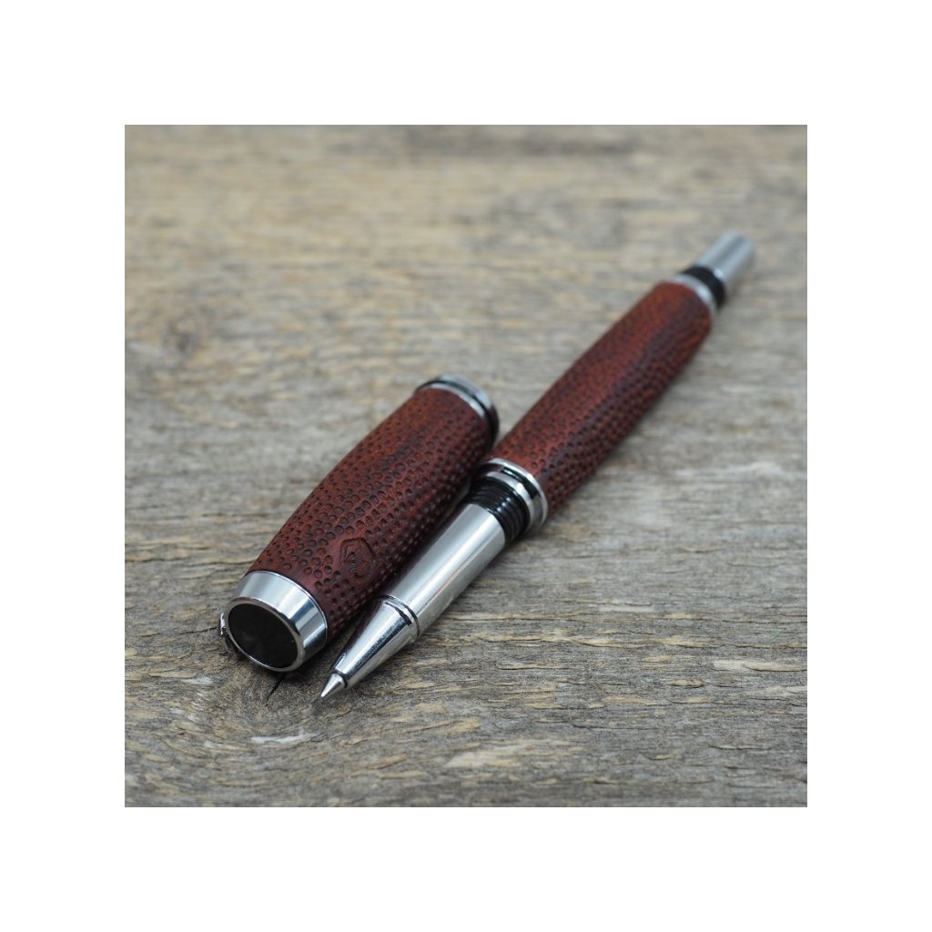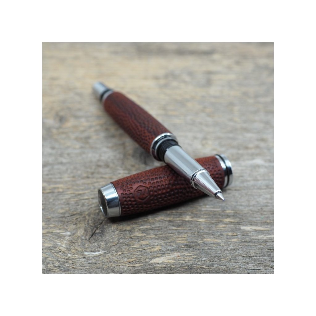 Luxusní ručně vyrobené kuličkové pero Portland S ze dřeva Padouku. Vzor je na peru vyfrézován za pomocí CNC frézky.