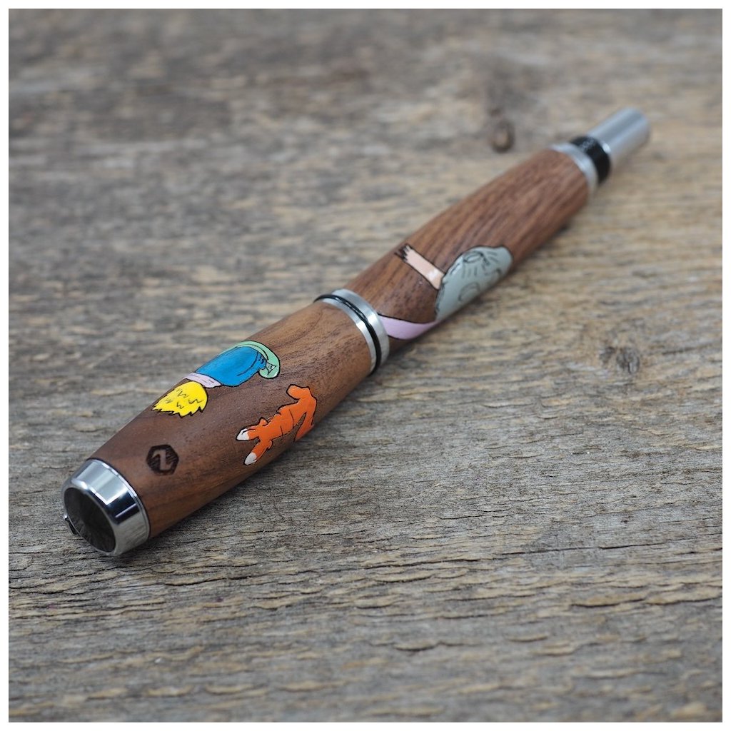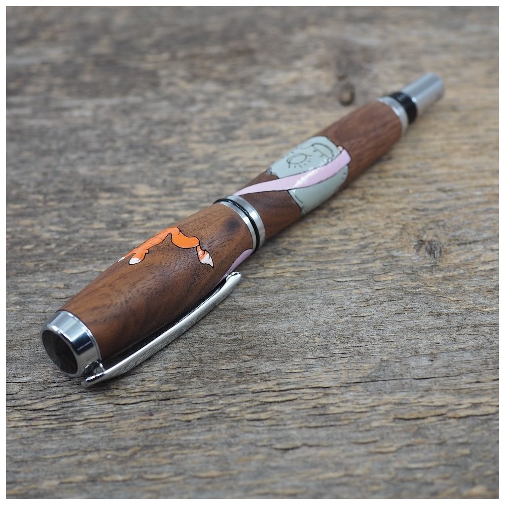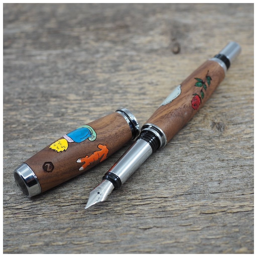Plnicí pero Portland S z amerického ořechu jsem vytvořil pro menší ruce nebo pro milovníky lehčích psacích per. Tentokrát jsem ho doplnil ručně barveným Malým princem, který je překryta vrstvou bezbarvého laku aby hezky vydržel.