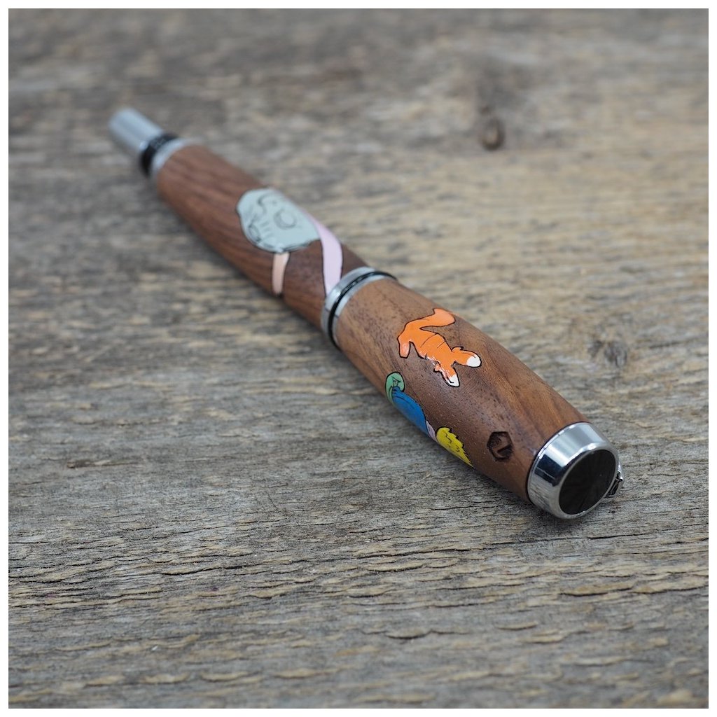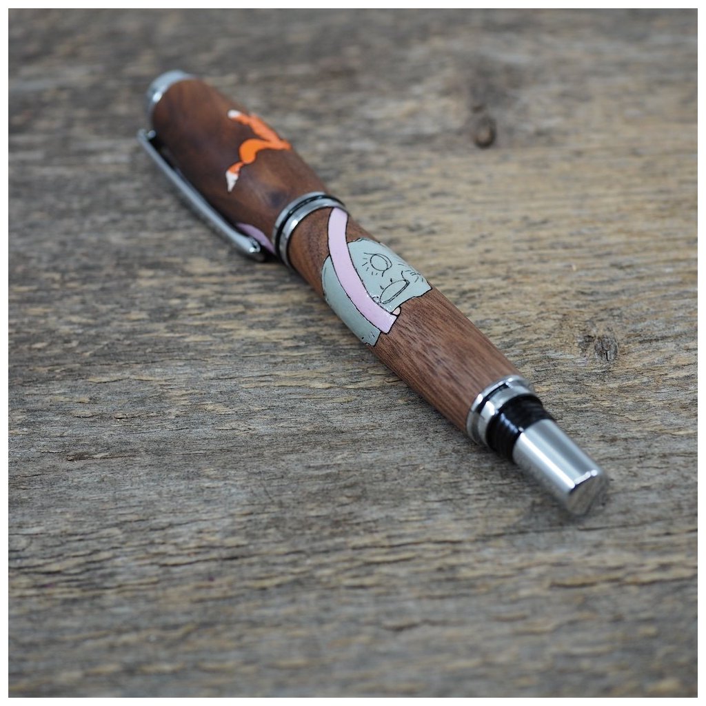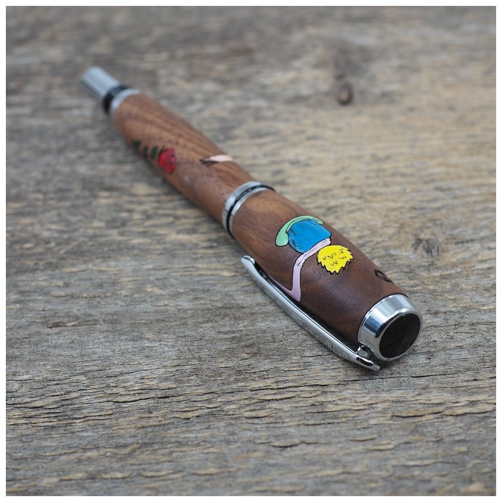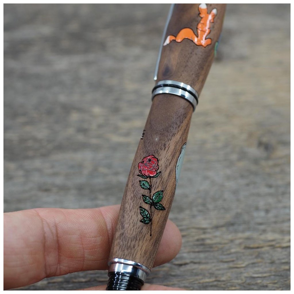Plnicí pero Portland S z amerického ořechu jsem vytvořil pro menší ruce nebo pro milovníky lehčích psacích per. Tentokrát jsem ho doplnil ručně barveným Malým princem, který je překryta vrstvou bezbarvého laku aby hezky vydržel.