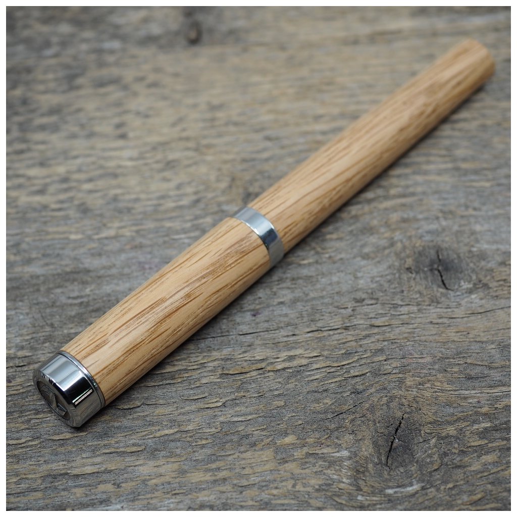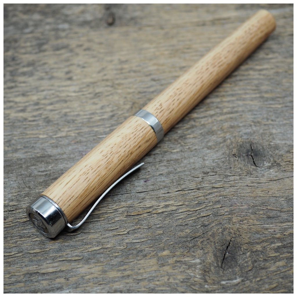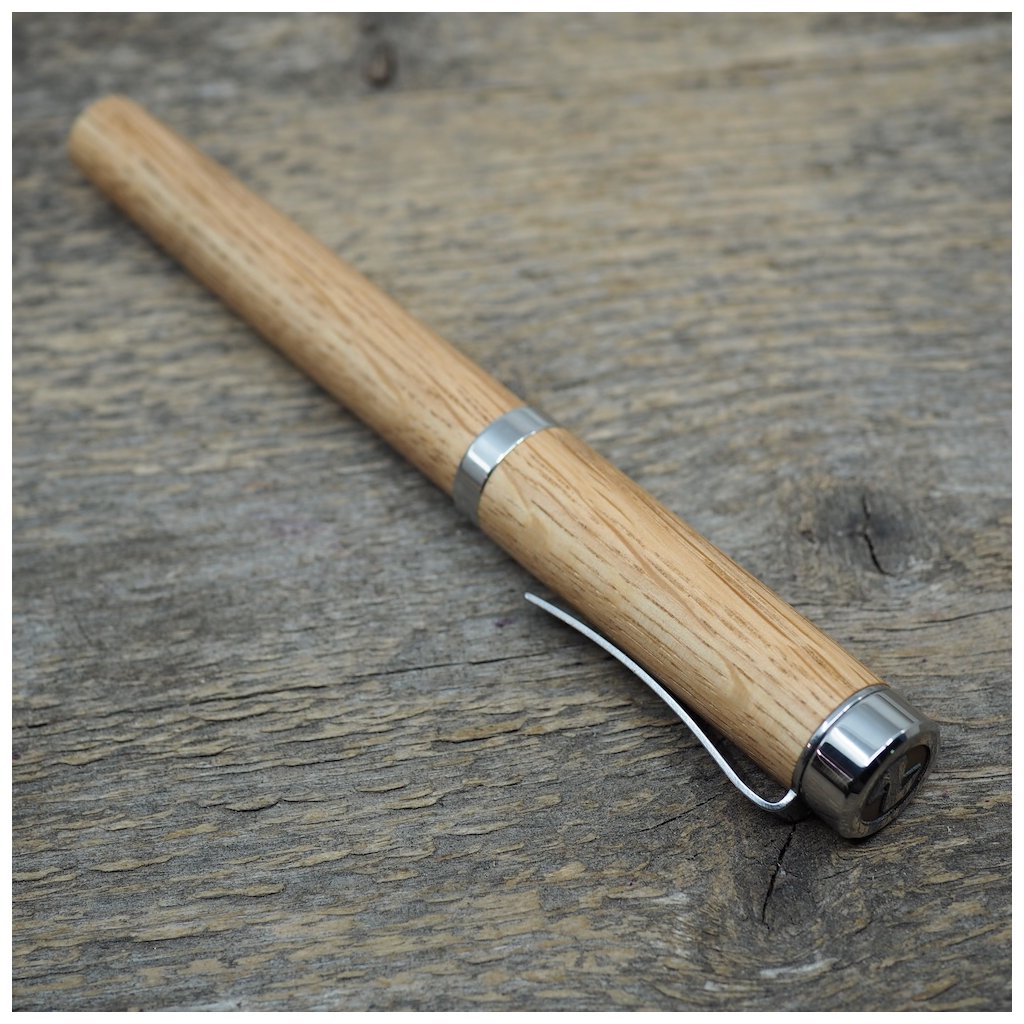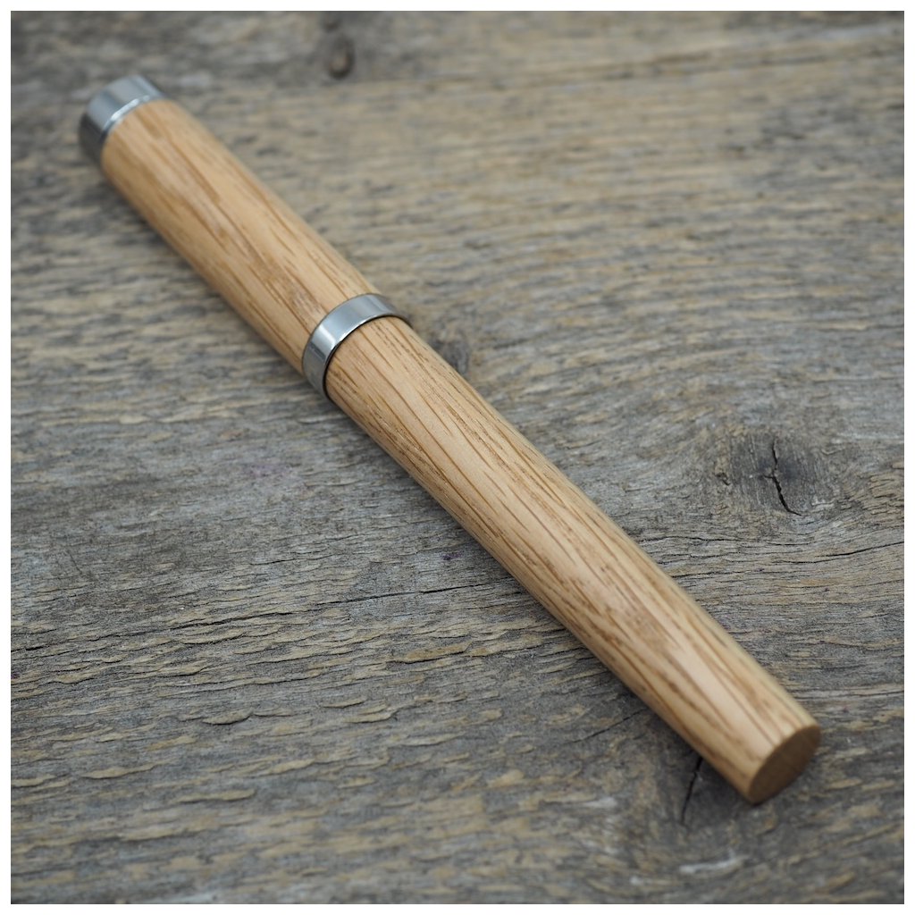 Luxusní ručně vyrobené pero Altos v kuličkové, nebo plnicí variantě (vyberete níže). Tělo pera je vyrobené ze dřeva českého dubu a všechny jeho kovové části jsou vyrobené z nerez oceli. I přesto má pero jen cca 40-50g podle dřeva, které je na pero použité. Kuličkové pero má v sobě náplň od firmy Schmidt, nebo plnící pero má ocelový hrot velikosti M