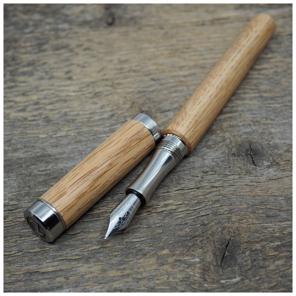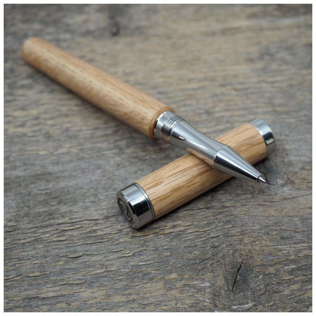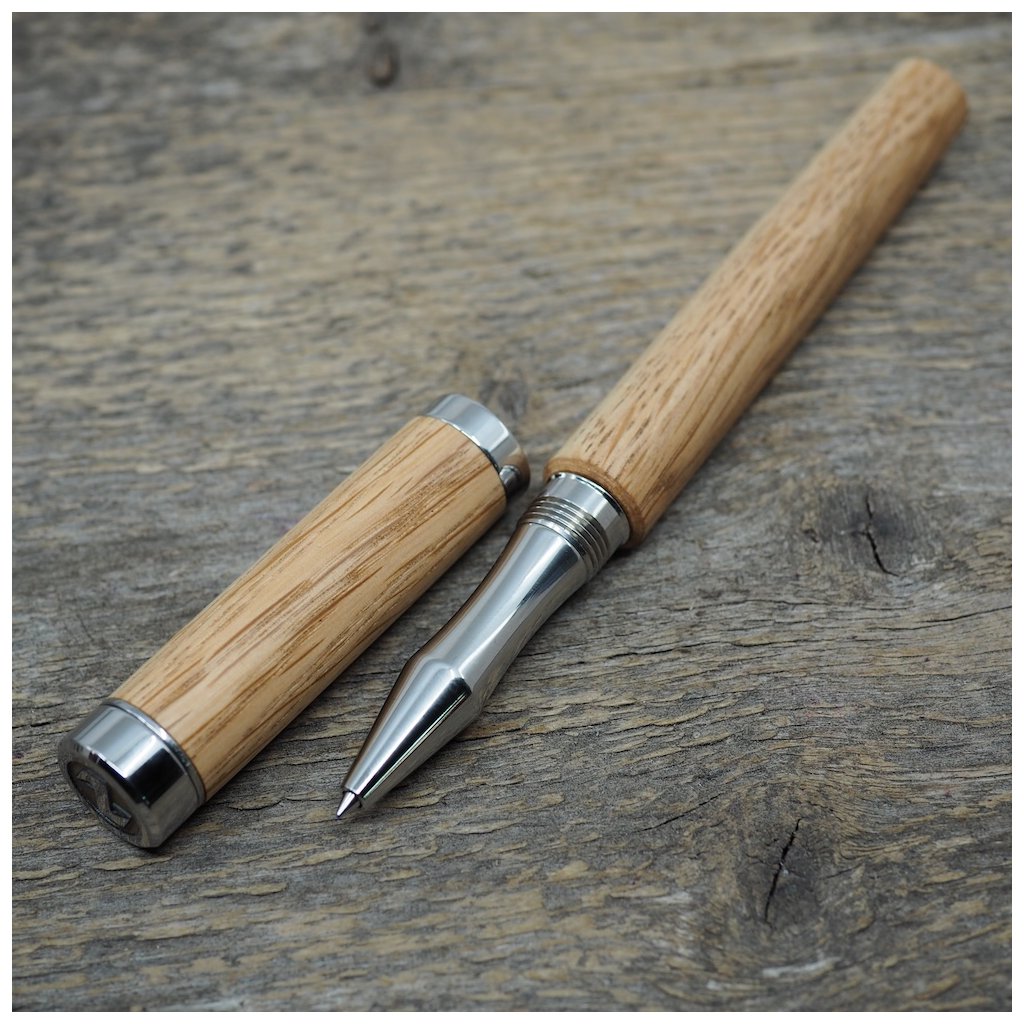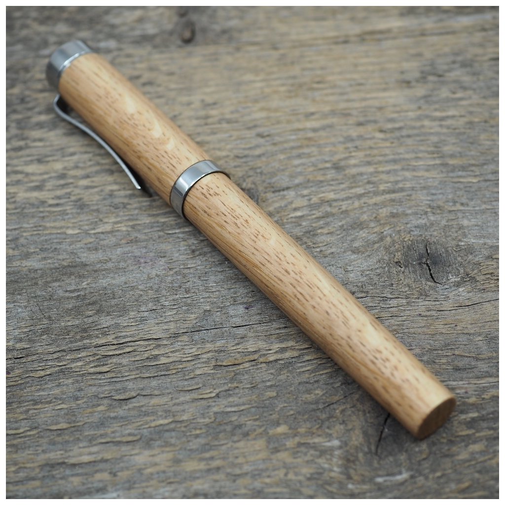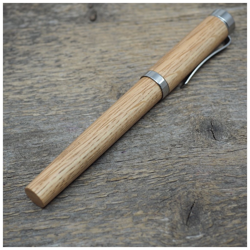 Luxusní ručně vyrobené pero Altos v kuličkové, nebo plnicí variantě (vyberete níže). Tělo pera je vyrobené ze dřeva českého dubu a všechny jeho kovové části jsou vyrobené z nerez oceli. I přesto má pero jen cca 40-50g podle dřeva, které je na pero použité. Kuličkové pero má v sobě náplň od firmy Schmidt, nebo plnící pero má ocelový hrot velikosti M