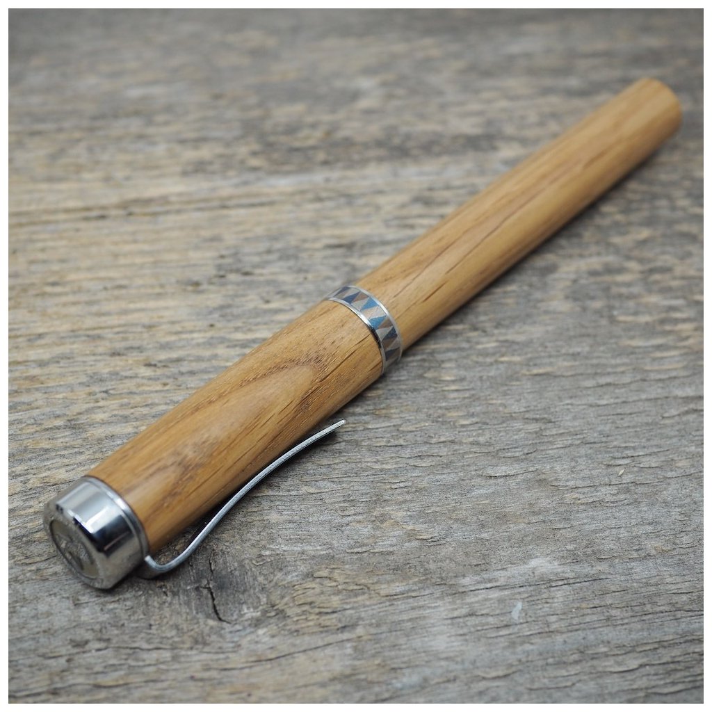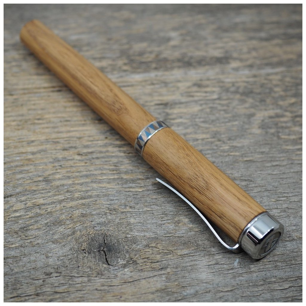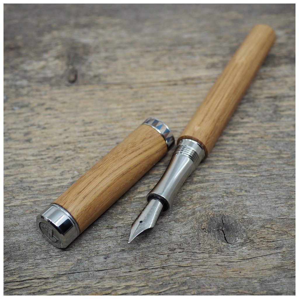 Luxusní ručně vyrobené pero Altos v kuličkové, nebo plnicí variantě (vyberete níže). Tělo pera je vyrobené ze dřeva českého dubu a všechny jeho kovové části jsou vyrobené z nerez oceli. I přesto má pero jen cca 40-50g podle dřeva, které je na pero použité. Kuličkové pero má v sobě náplň od firmy Schmidt, nebo plnící pero má ocelový hrot velikosti M