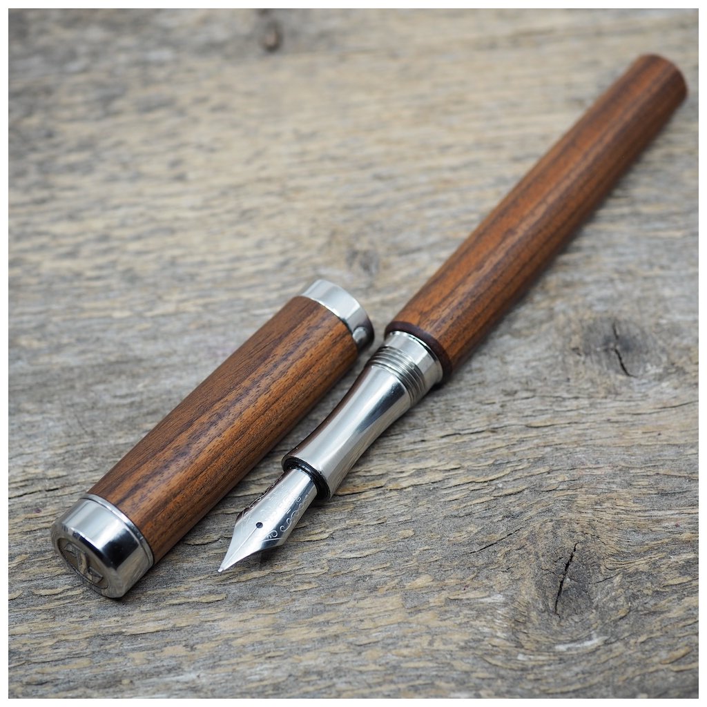 Pokud chcete aby bylo gravírování hezky vidět, doporučím spíše světlejší dřeviny jako je Teak, Zebrano, Padouk, nebo třeba Olivu. Na Wenge, Americkém ořechu, nebo třeba bahenním dubu bude věnování decentnější. Nápisy zpravidla umisťuji na víčko pera a to buď na bok, nebo na spodní část k "prstýnku".
