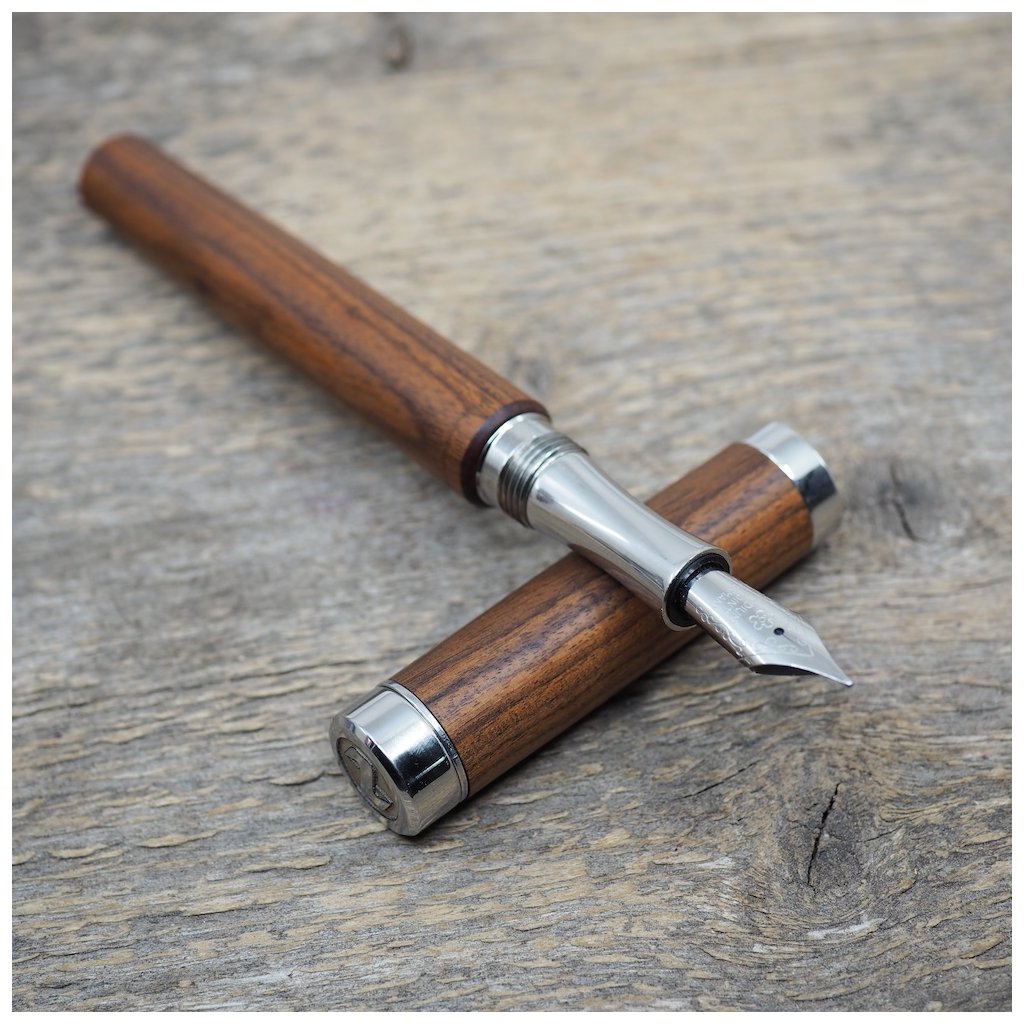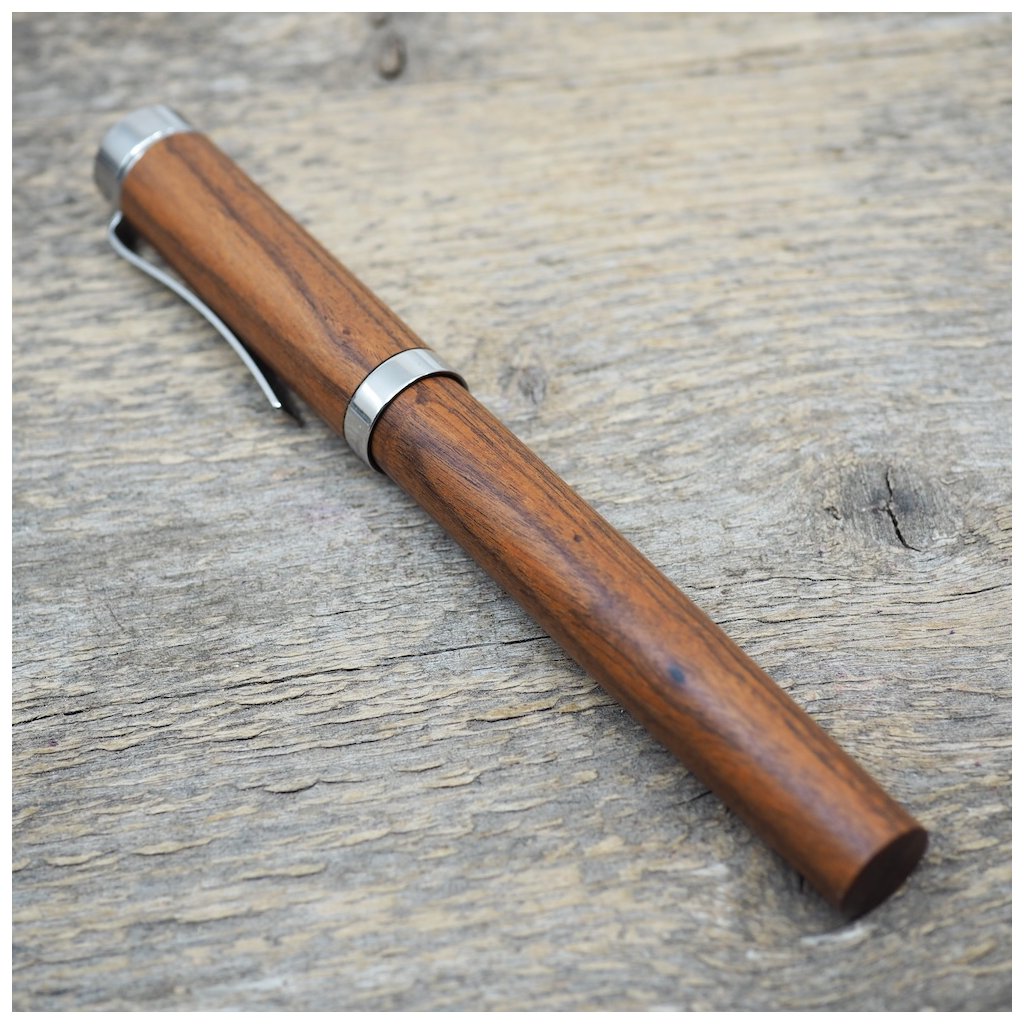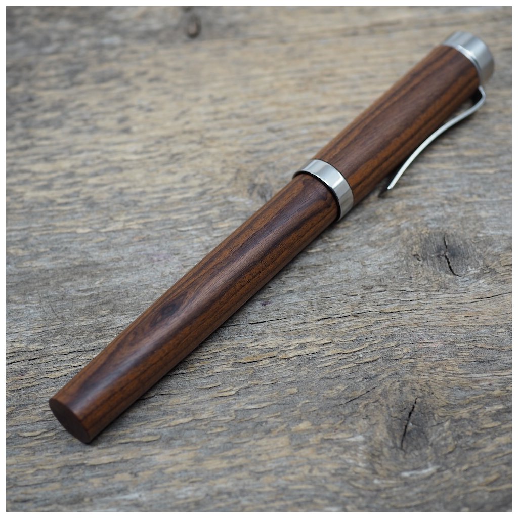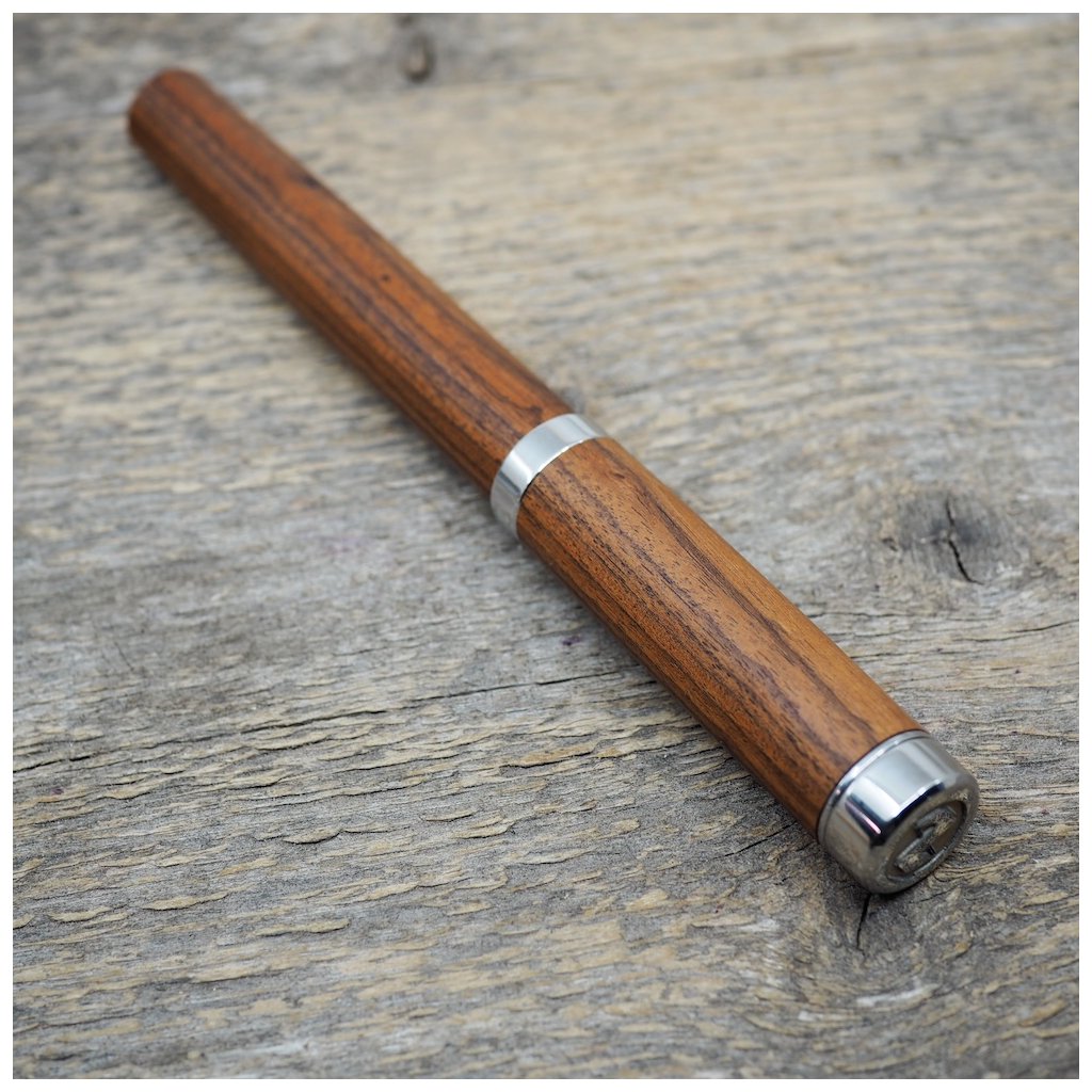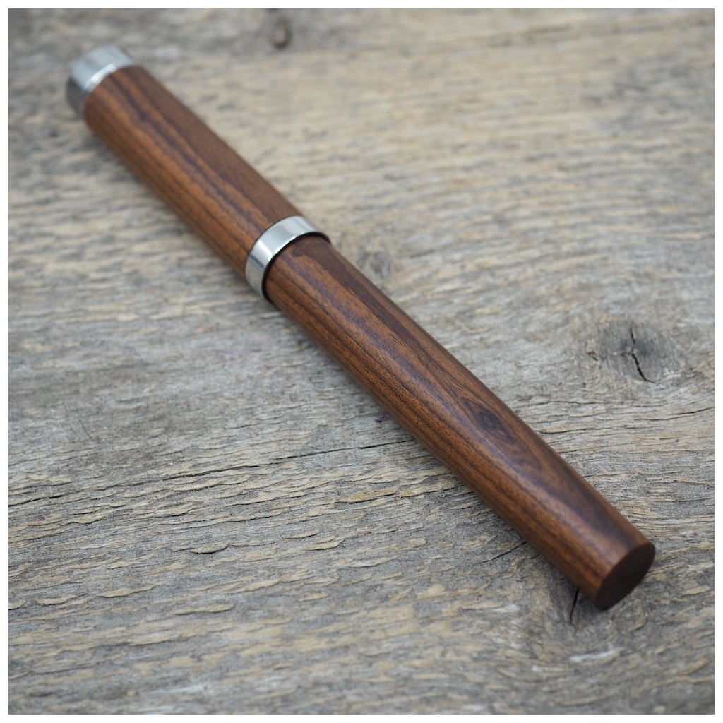 Luxusní ručně vyrobené pero Altos v kuličkové, nebo plnicí variantě (vyberete níže). Tělo pera je vyrobené ze dřeva Palisandru a všechny jeho kovové části jsou vyrobené z nerez oceli. I přesto má pero jen cca 40-50g podle dřeva, které je na pero použité. Kuličkové pero má v sobě náplň od firmy Schmidt, nebo plnící pero má ocelový hrot velikosti M
