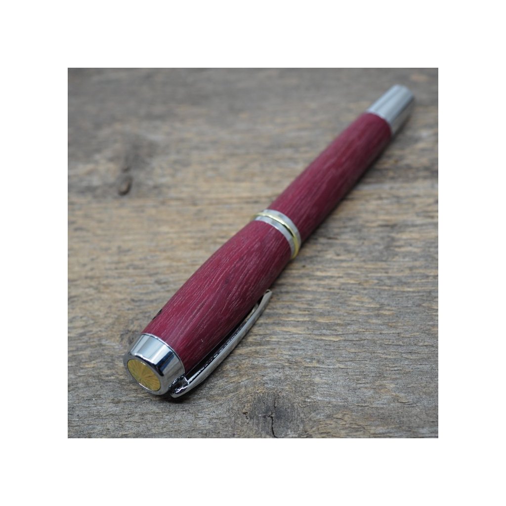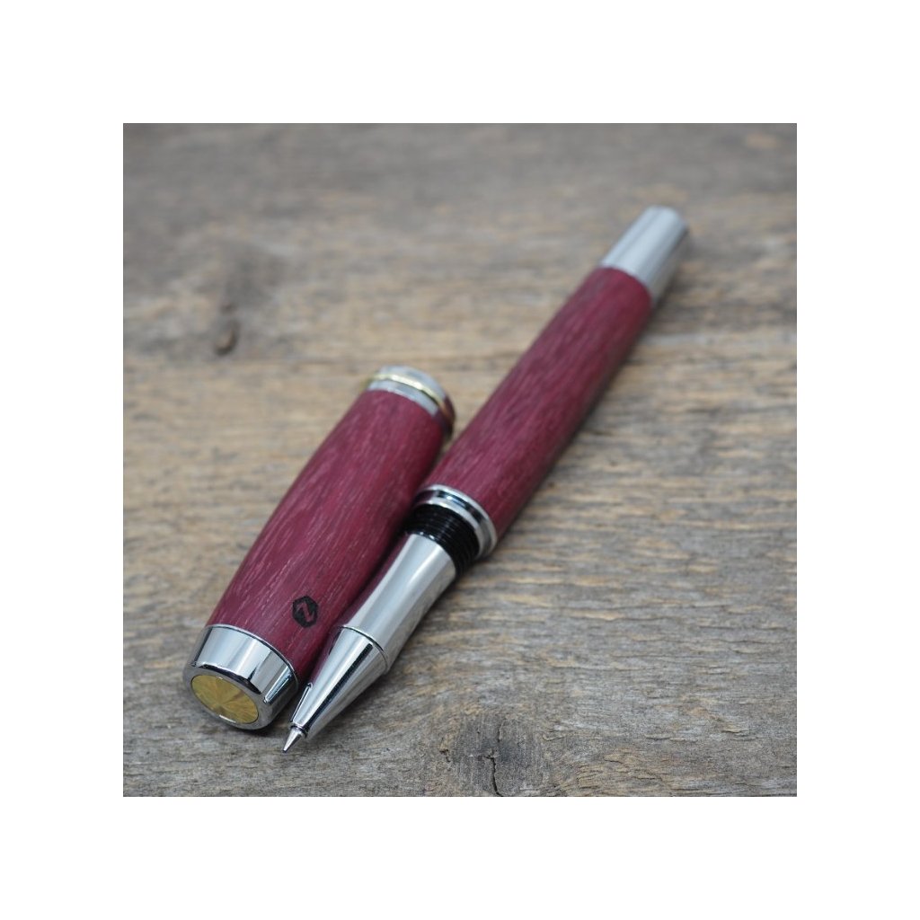 Luxusní ručně vyrobené kuličkové pero Portland L z exotického dřeva Amaranth. Víčko pera je šroubovací, takže dobře drží, a kovové komponenty se lesknou stříbrně. Pero se hodí pro psaní poznámek při obchodních jednáních a na schůzkách, ale také pro krasopisné zaznamenávání událostí do deníčků a diářů. Kuličkové pero je baleno v luxusní dárkové krabičce s přiloženým certifikátem pravosti.