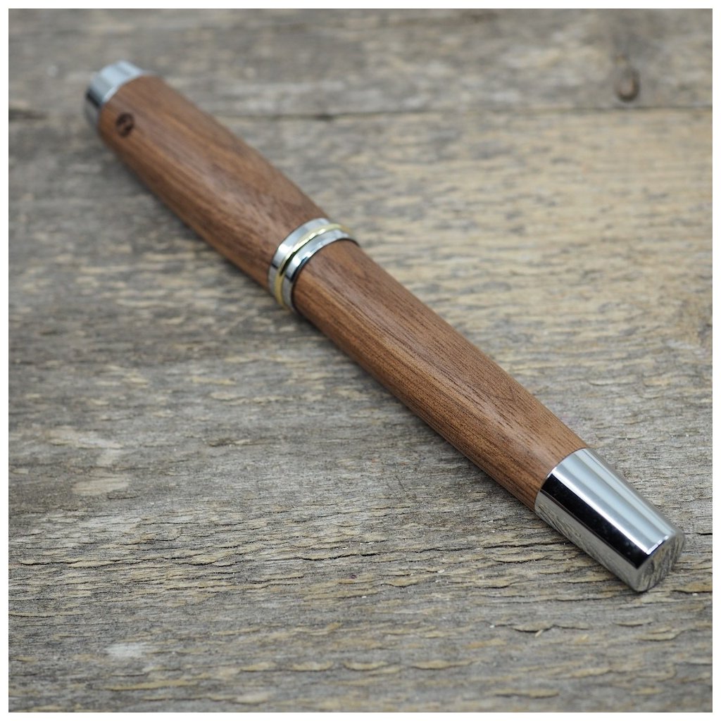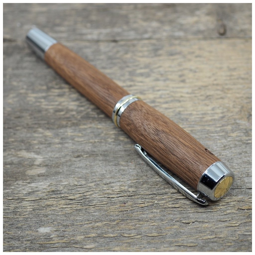Kuličkové pero Portland L z exotického dřeva Americký ořech jsem vytvořil pro větší ruce nebo pro milovníky těžších a mohutnějších psacích per. Do pera se vkládají běžné náplně, a aby bylo pero skutečným originálem, můžete si na něj nechat vygravírovat vzkaz, monogram, významné datum, jméno nebo přezdívku, logo firmy a mnohé další. Inspiraci najdete v ukázkách gravírování.