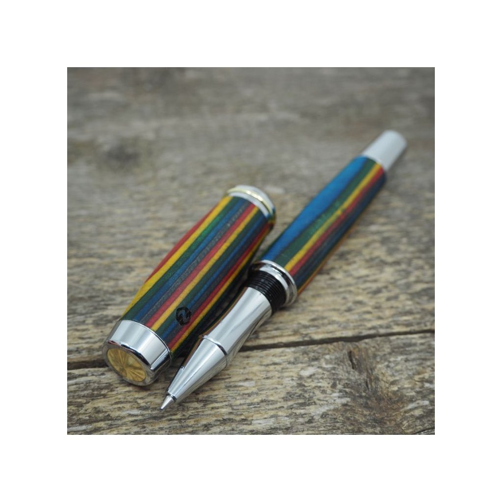 Dřevěné kuličkové pero Portland L - Barevná dýha 2