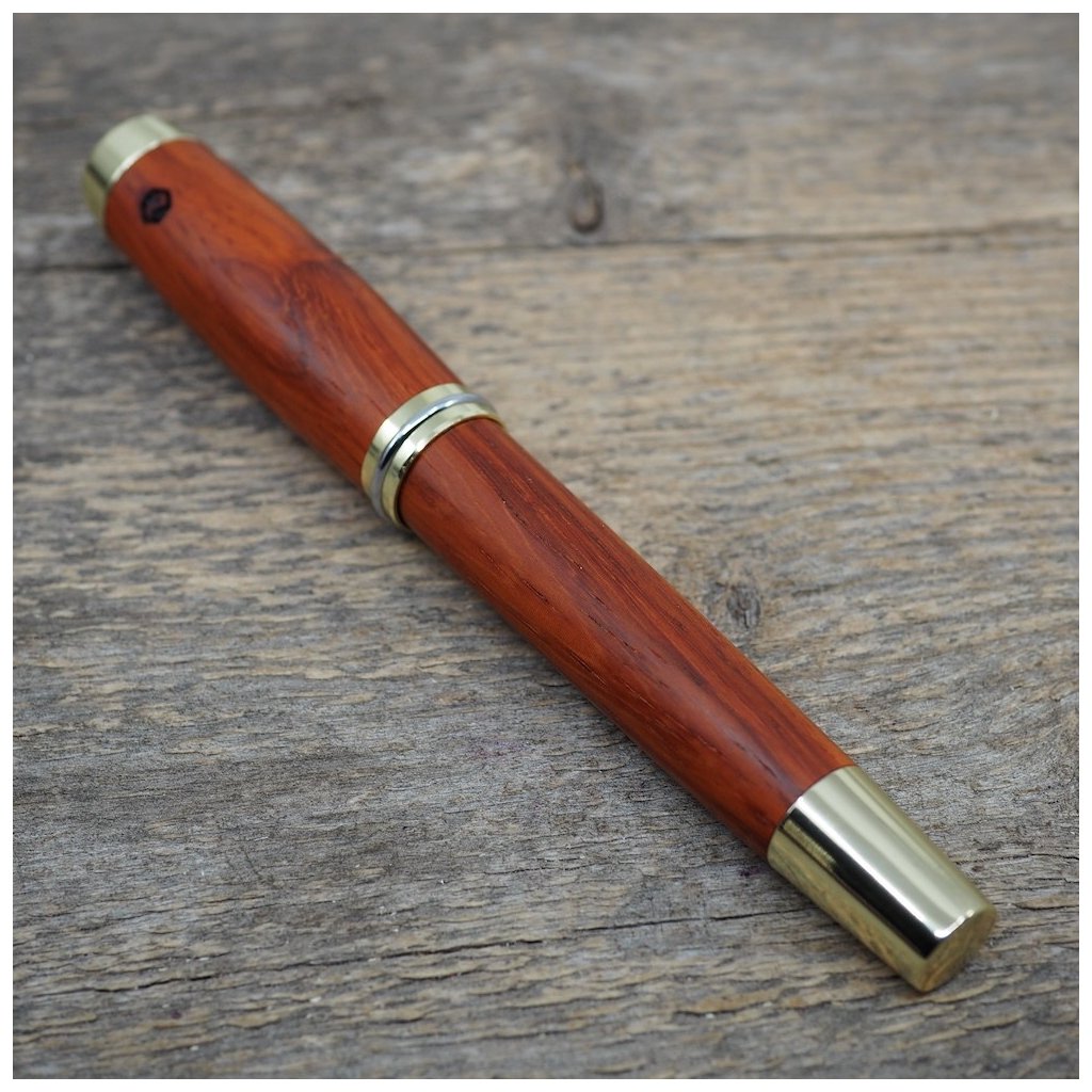 Luxusní ručně vyrobené kuličkové pero Portland L z exotického dřeva Padouk. Víčko pera je šroubovací, takže dobře drží, a kovové komponenty se lesknou zlatě. Pero se hodí pro psaní poznámek při obchodních jednáních a na schůzkách, ale také pro krasopisné zaznamenávání událostí do deníčků a diářů. Kuličkové pero je baleno v luxusní dárkové krabičce s přiloženým certifikátem pravosti