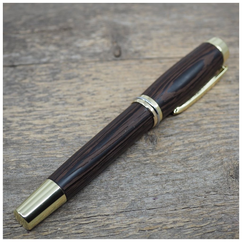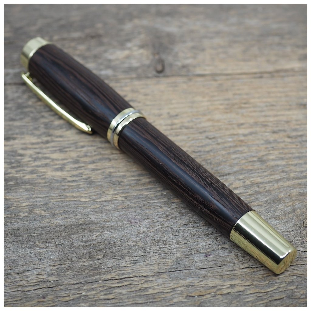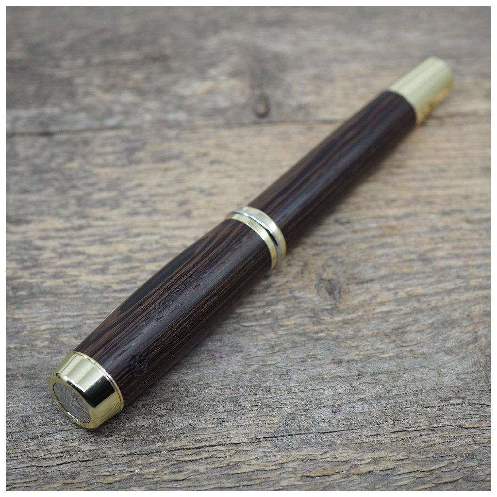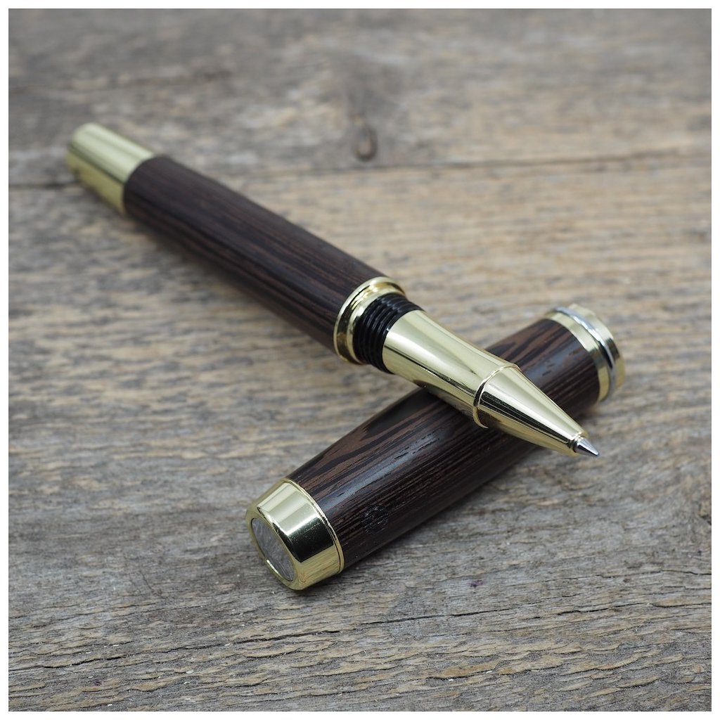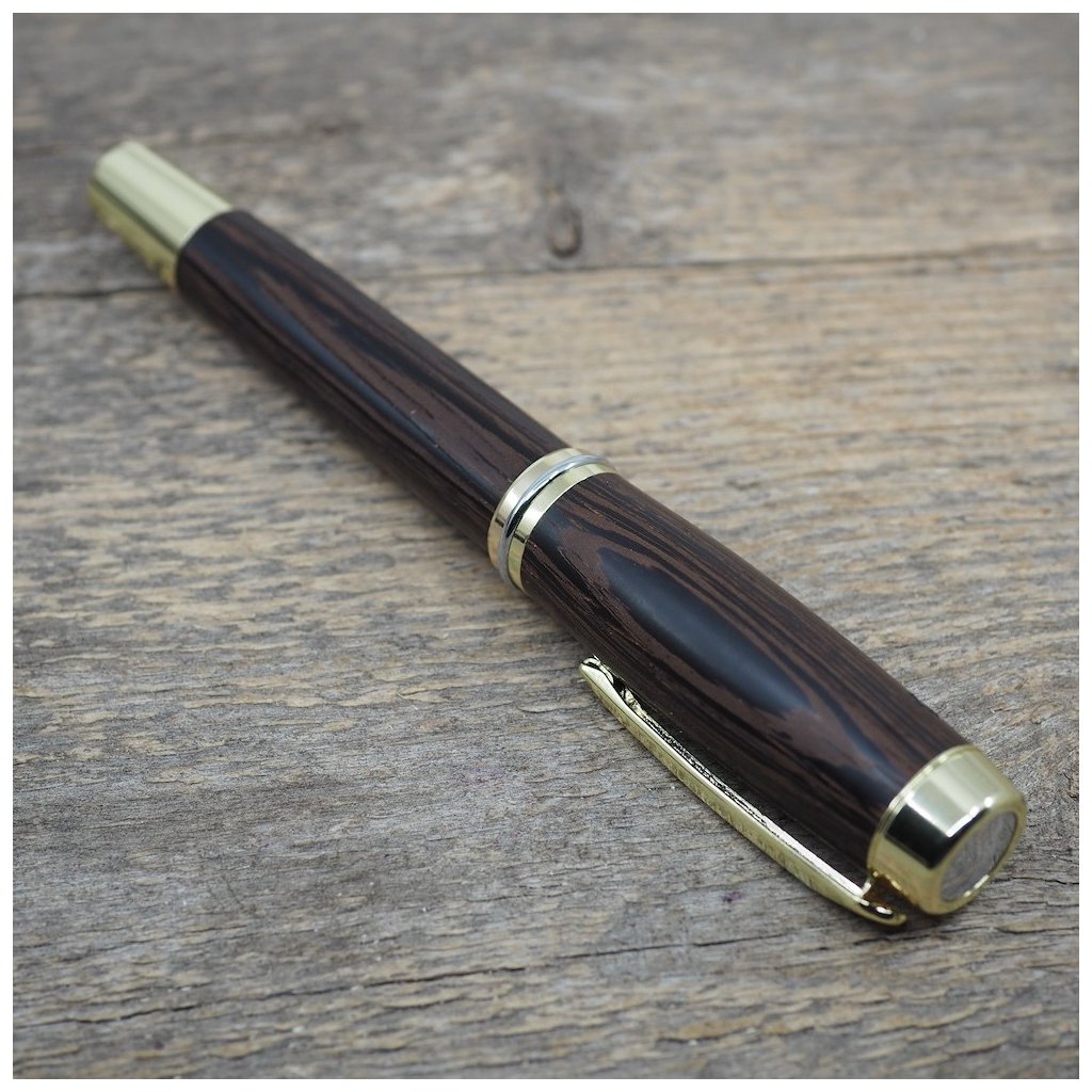 Luxusní ručně vyrobené kuličkové pero Portland L z exotického dřeva Wenge. Víčko pera je šroubovací, takže dobře drží, a kovové komponenty se lesknou zlatě. Pero se hodí pro psaní poznámek při obchodních jednáních a na schůzkách, ale také pro krasopisné zaznamenávání událostí do deníčků a diářů. Kuličkové pero je baleno v luxusní dárkové krabičce s přiloženým certifikátem pravosti