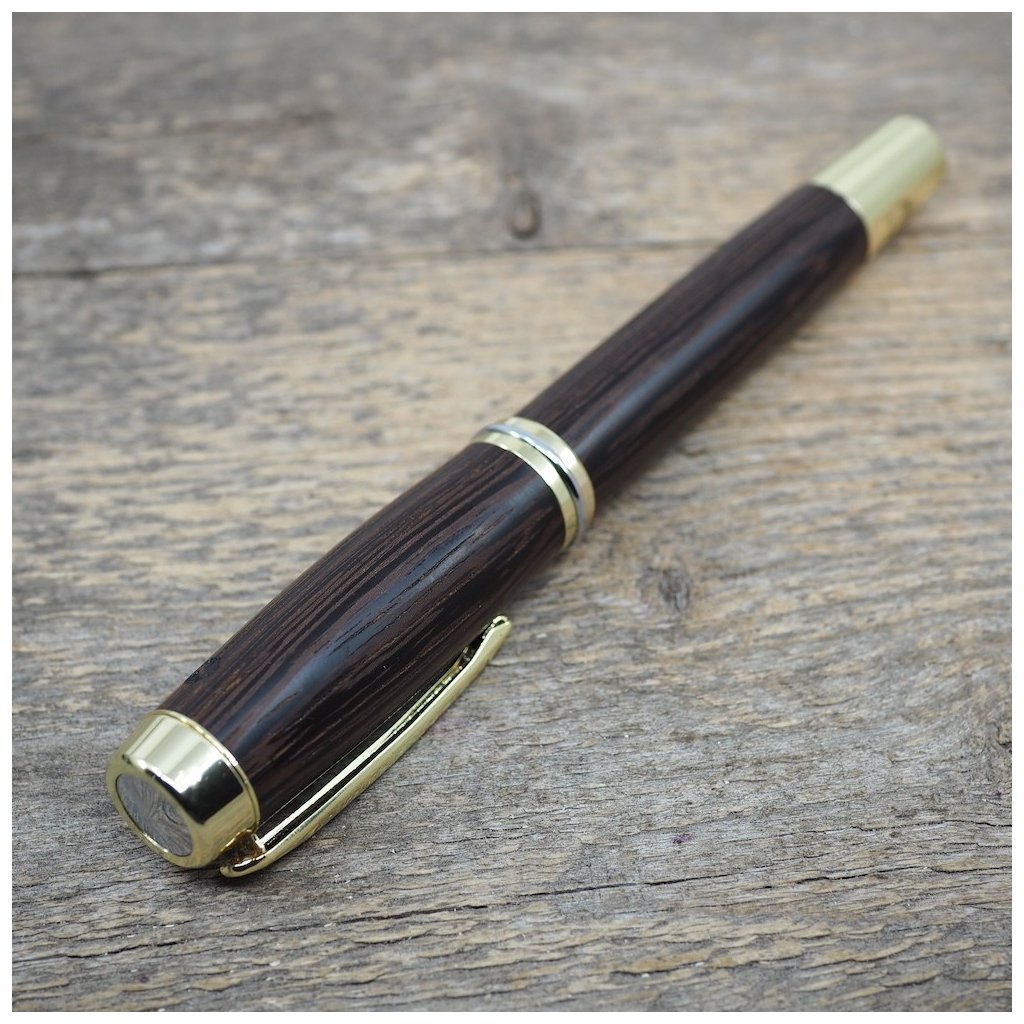 Wenge poznáte podle krásné dekorativní kresby, která je protknutá do tmavě hnědého podkladu. Je vysoce odolné proti oděru, takže je s oblibou používáno na podlahové krytiny. Jestliže chcete poznat jeho domovinu, vydejte se až do Zairu, Kamerunu nebo Gabonu. Až tam se skrývá strom, ze kterého je vyrobeno vaše dřevěné pero. Wenge je skutečně pozoruhodné tvrdé dřevo, které je lepší povrchově neupravovat. Bez úpravy a jakéhokoliv ošetření vypadá efektněji - tracheje (cévy) nejsou barevně jednotné.
