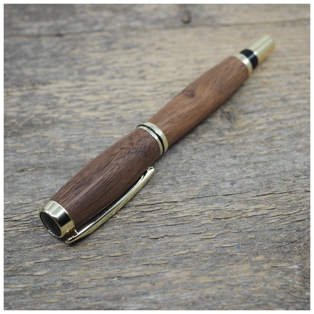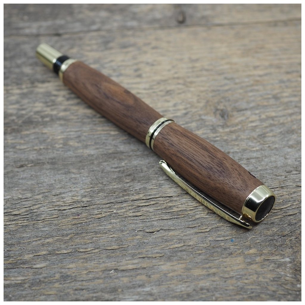 Luxusní ručně vyrobené kuličkové pero Portland S z exotického dřeva Amerického ořechu. Víčko pera je šroubovací, takže dobře drží, a kovové komponenty se lesknou zlatě. Pero se hodí pro psaní poznámek při obchodních jednáních a na schůzkách, ale také pro krasopisné zaznamenávání událostí do deníčků a diářů. Kuličkové pero je baleno v luxusní dárkové krabičce s přiloženým certifikátem pravosti.