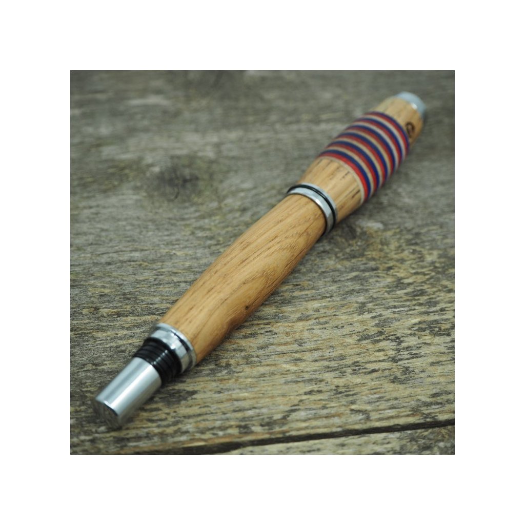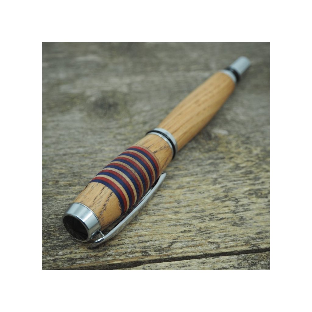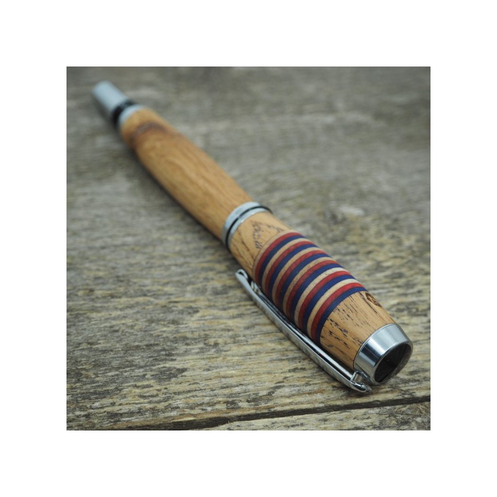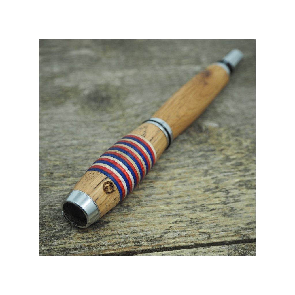 Dřevěné kuličkové pero Portland S - Bílá-červená-modrá dýha + dub 4