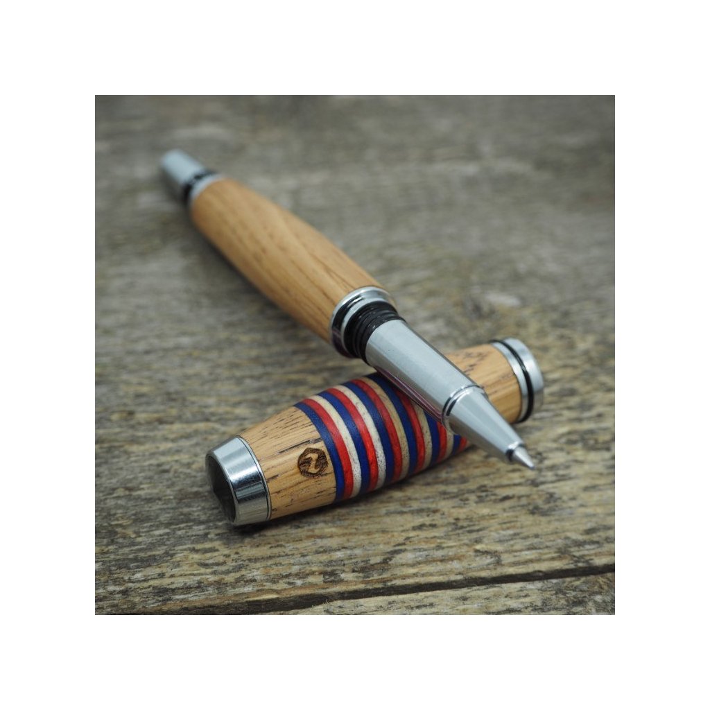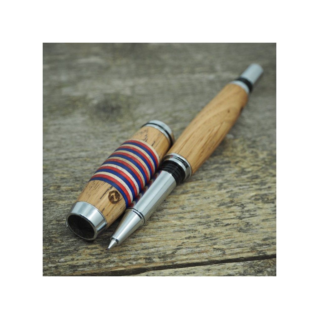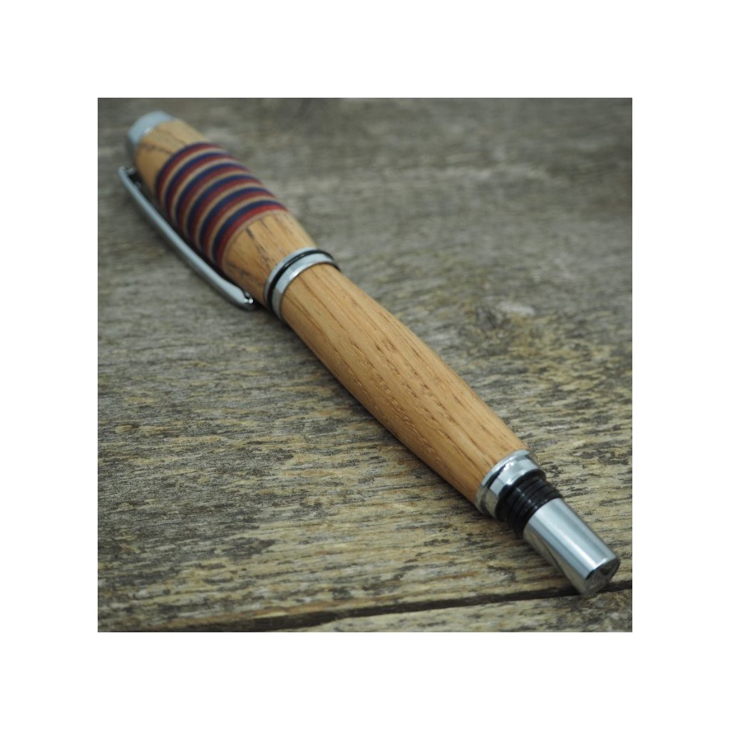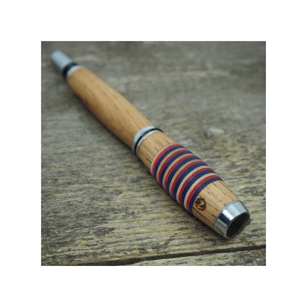 Dřevěné kuličkové pero Portland S - Bílá-červená-modrá dýha + dub 4