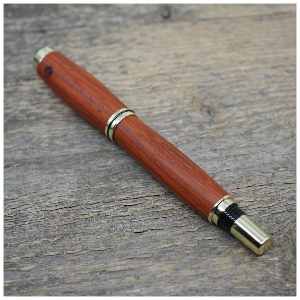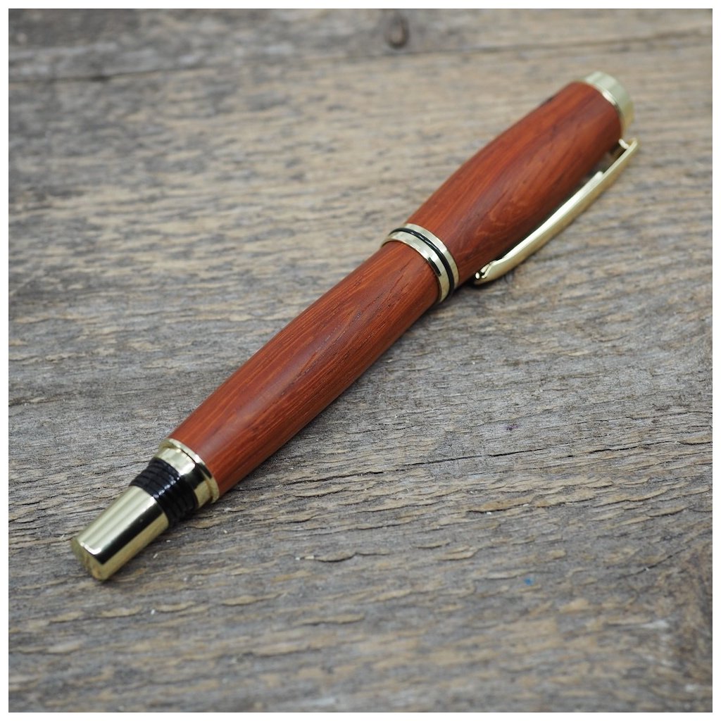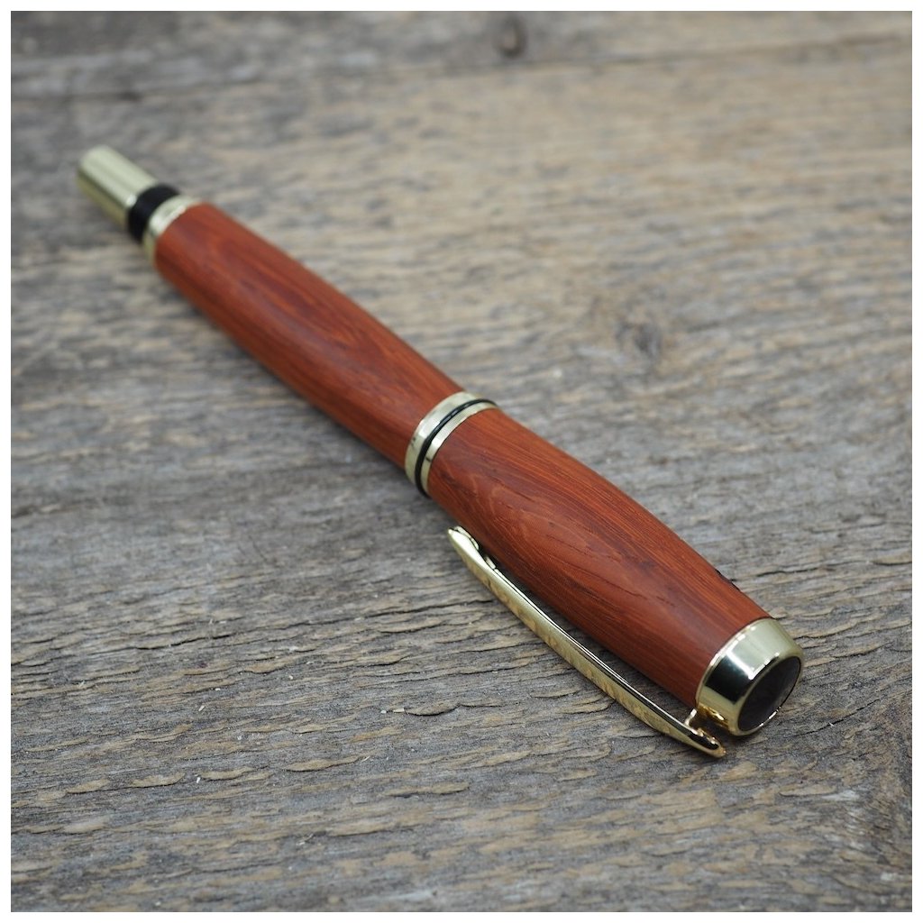 Luxusní ručně vyrobené kuličkové pero Portland S z exotického dřeva Padouk. Víčko pera je šroubovací, takže dobře drží, a kovové komponenty se lesknou zlatě. Pero se hodí pro psaní poznámek při obchodních jednáních a na schůzkách, ale také pro krasopisné zaznamenávání událostí do deníčků a diářů. Kuličkové pero je baleno v luxusní dárkové krabičce s přiloženým certifikátem pravosti.