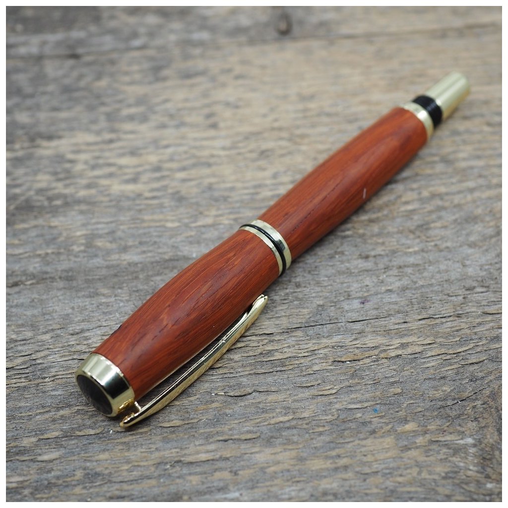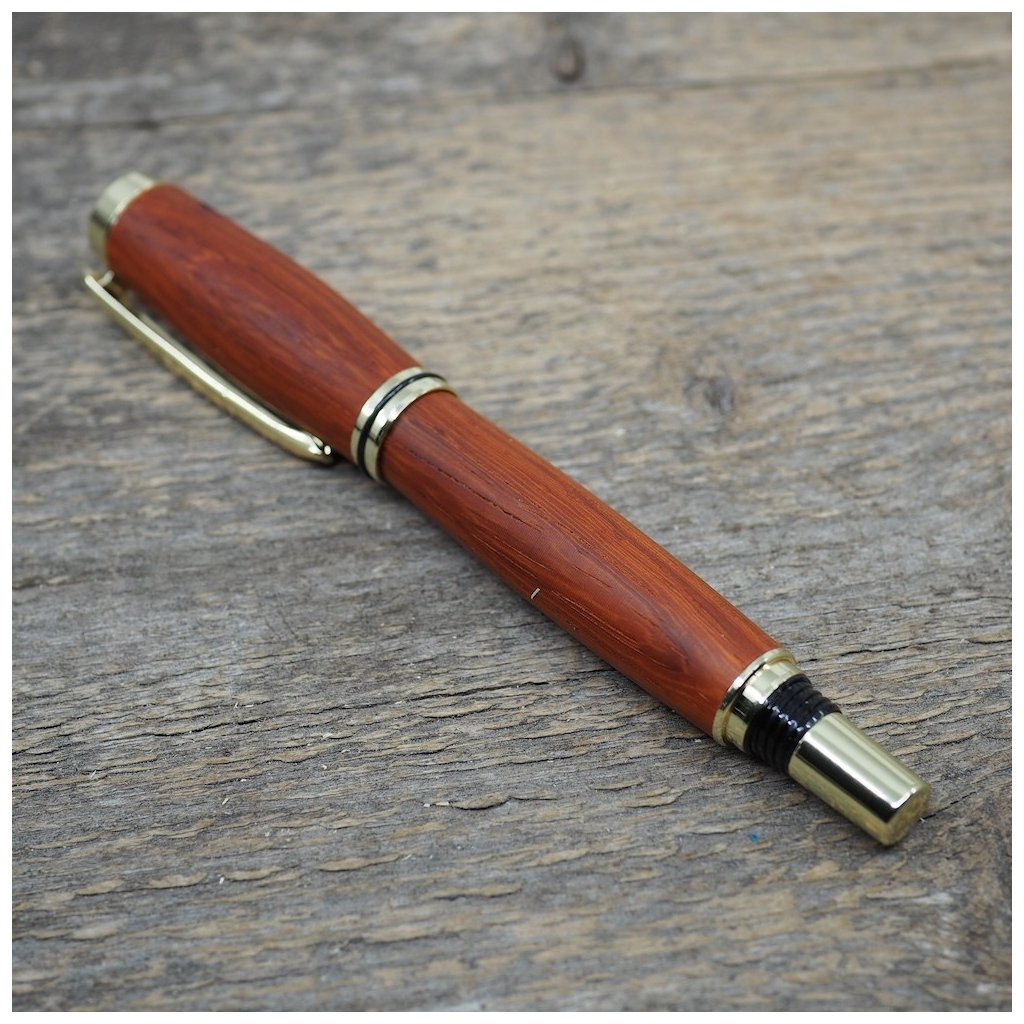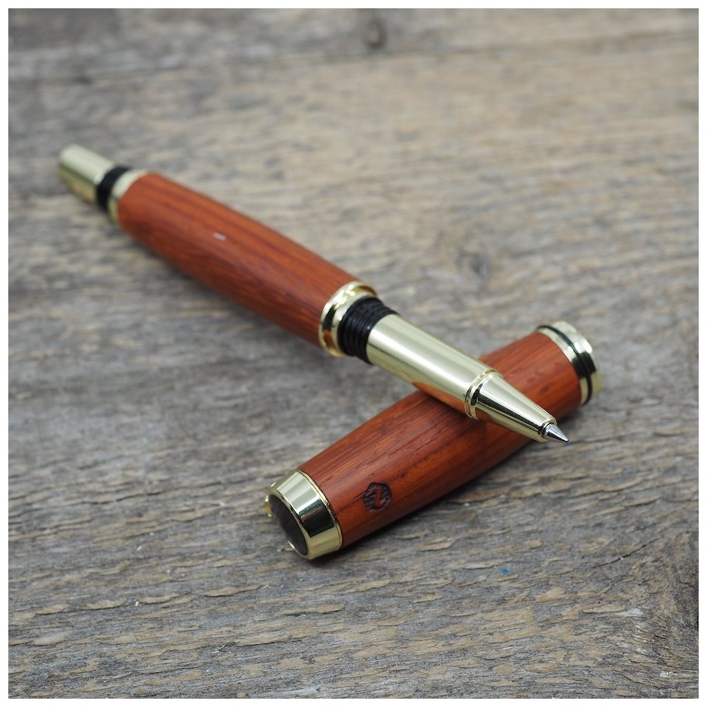 Luxusní ručně vyrobené kuličkové pero Portland S z exotického dřeva Padouk. Víčko pera je šroubovací, takže dobře drží, a kovové komponenty se lesknou zlatě. Pero se hodí pro psaní poznámek při obchodních jednáních a na schůzkách, ale také pro krasopisné zaznamenávání událostí do deníčků a diářů. Kuličkové pero je baleno v luxusní dárkové krabičce s přiloženým certifikátem pravosti.