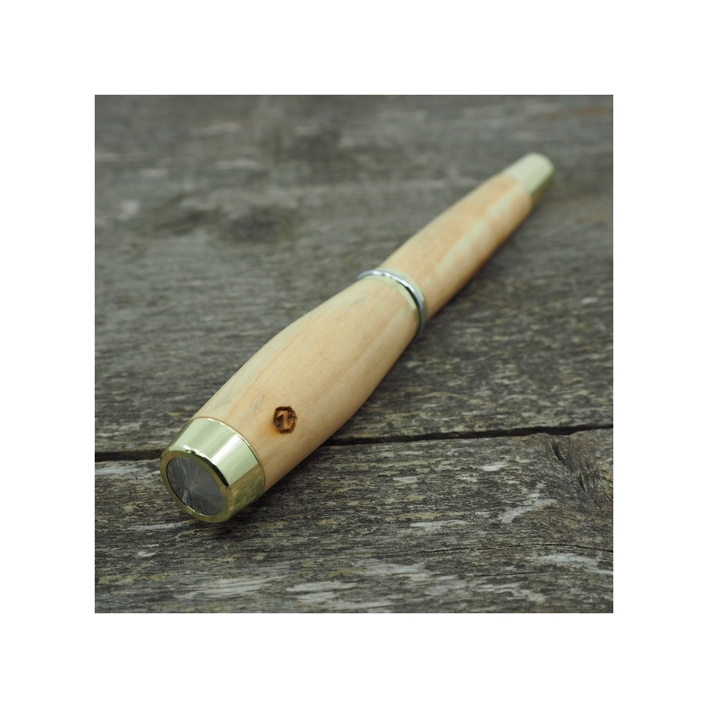 Plnicí pero Portland L z olivového dřeva ze Sicílie jsem vytvořil pro větší ruce nebo pro milovníky těžších a objemnějších psacích per. Plní se klasickými bombičkami, které seženete v každém papírnictví, a aby bylo pero skutečným originálem, můžete si na něj nechat vygravírovat vzkaz, monogram, významné datum, jméno nebo přezdívku, logo firmy a mnohé další. Inspiraci najdete v ukázkách gravírování.