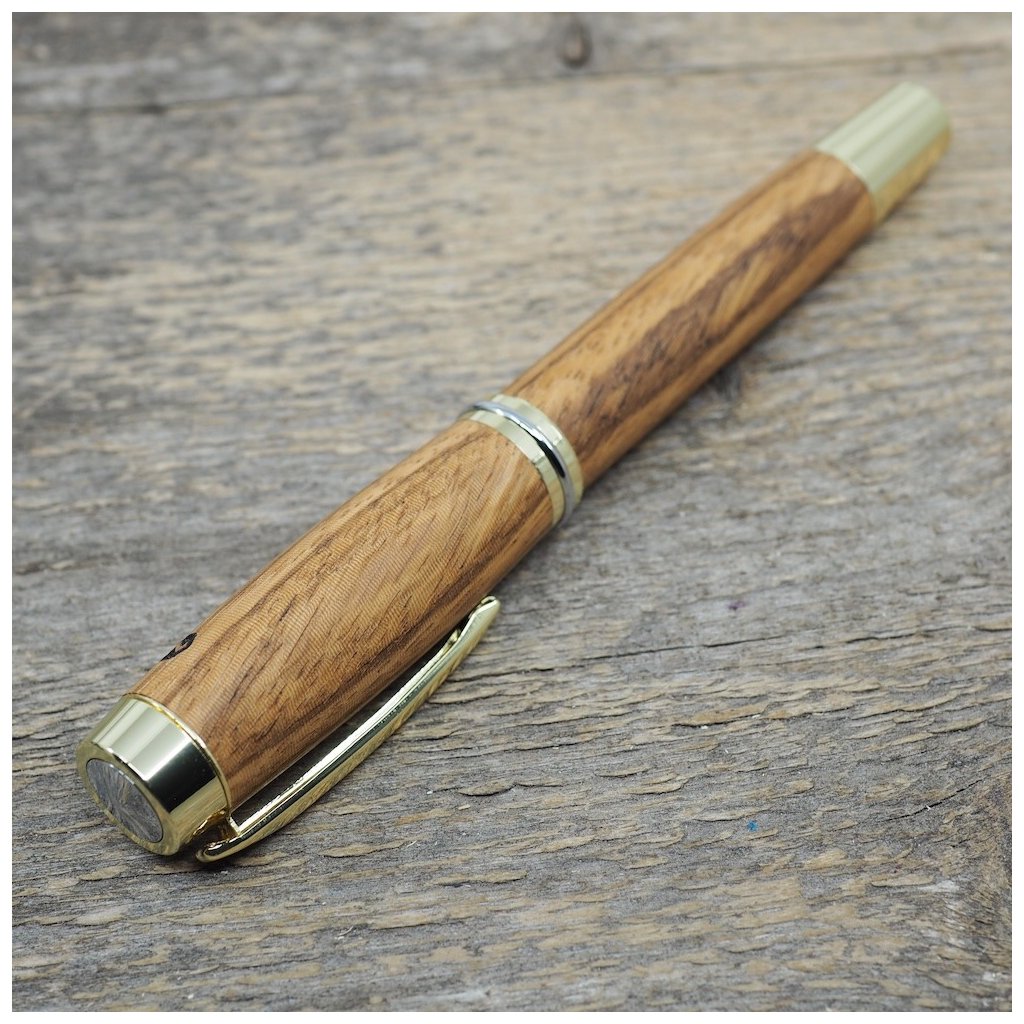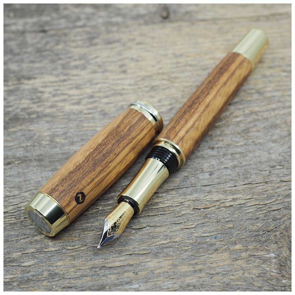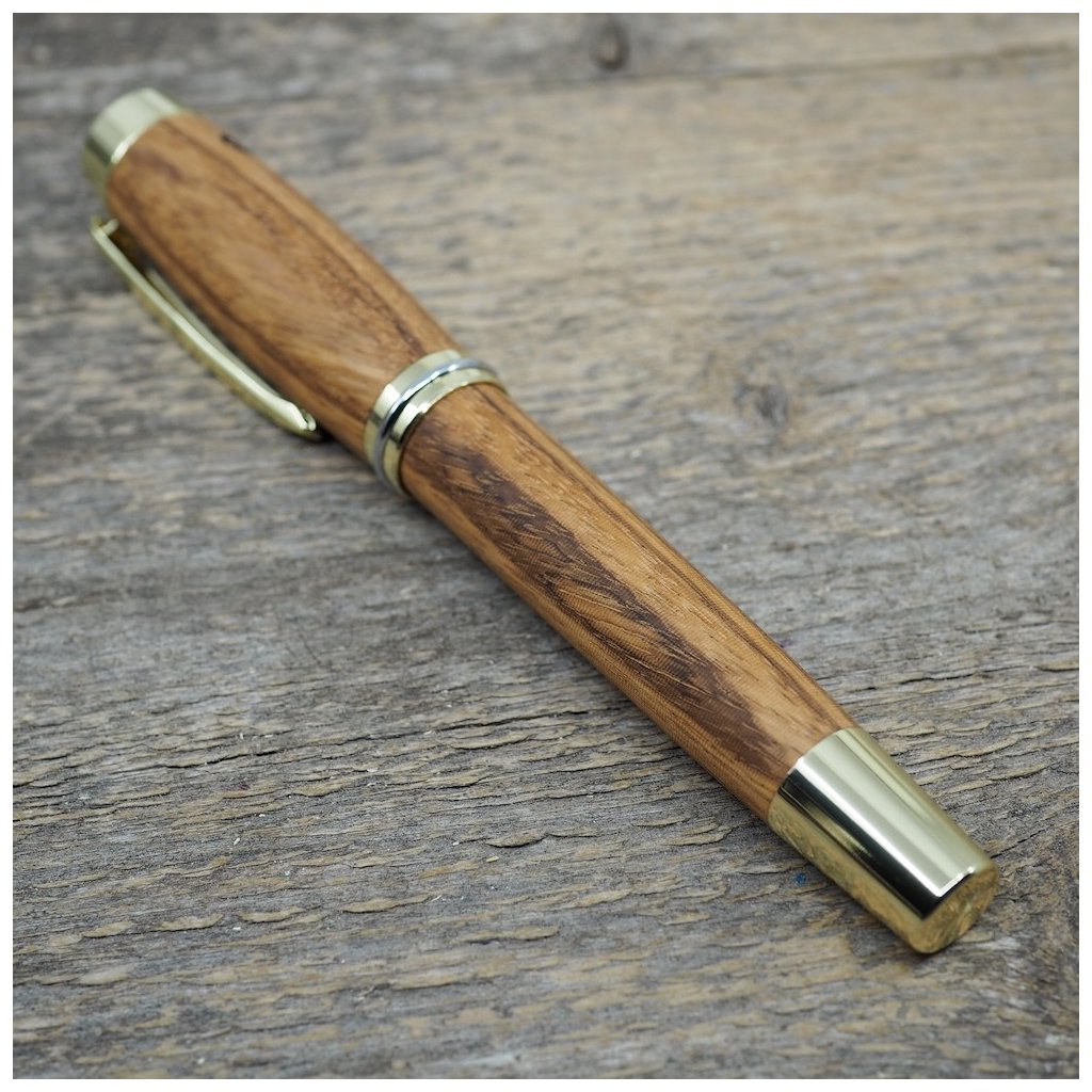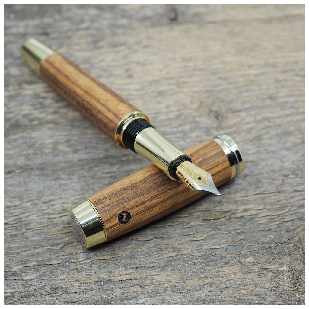 Dřevěné plnicí pero Portland L - Zebrano - zlaté