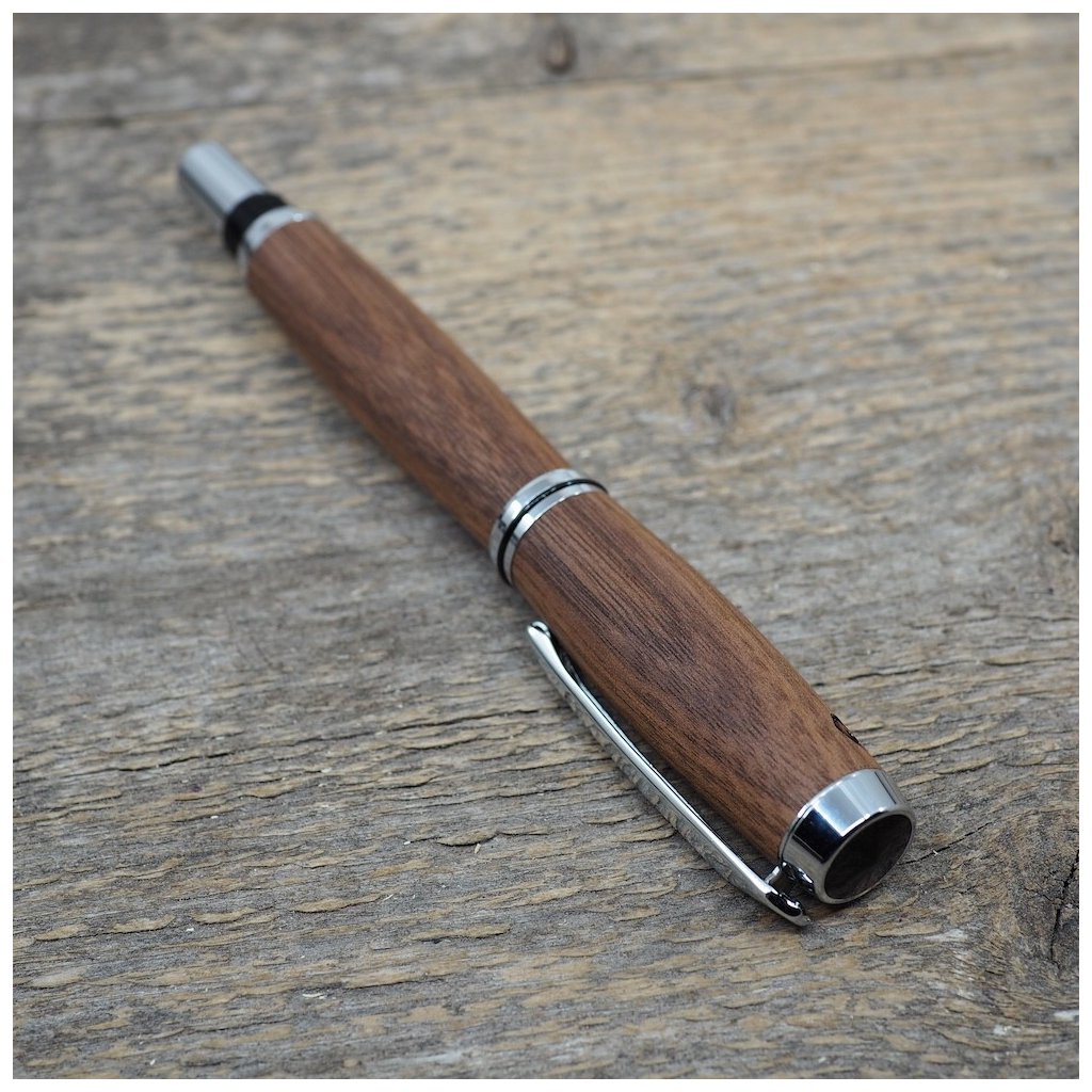 Luxusní ručně vyrobené plnicí pero Portland S z exotického dřeva Amerického ořechu. Víčko pera je šroubovací, takže dobře drží, a kovové komponenty se lesknou stříbrně. Pero se hodí pro psaní poznámek při obchodních jednáních a na schůzkách, ale také pro krasopisné zaznamenávání událostí do deníčků a diářů. Plnicí pero je baleno v luxusní dárkové krabičce s přiloženým certifikátem pravosti.
