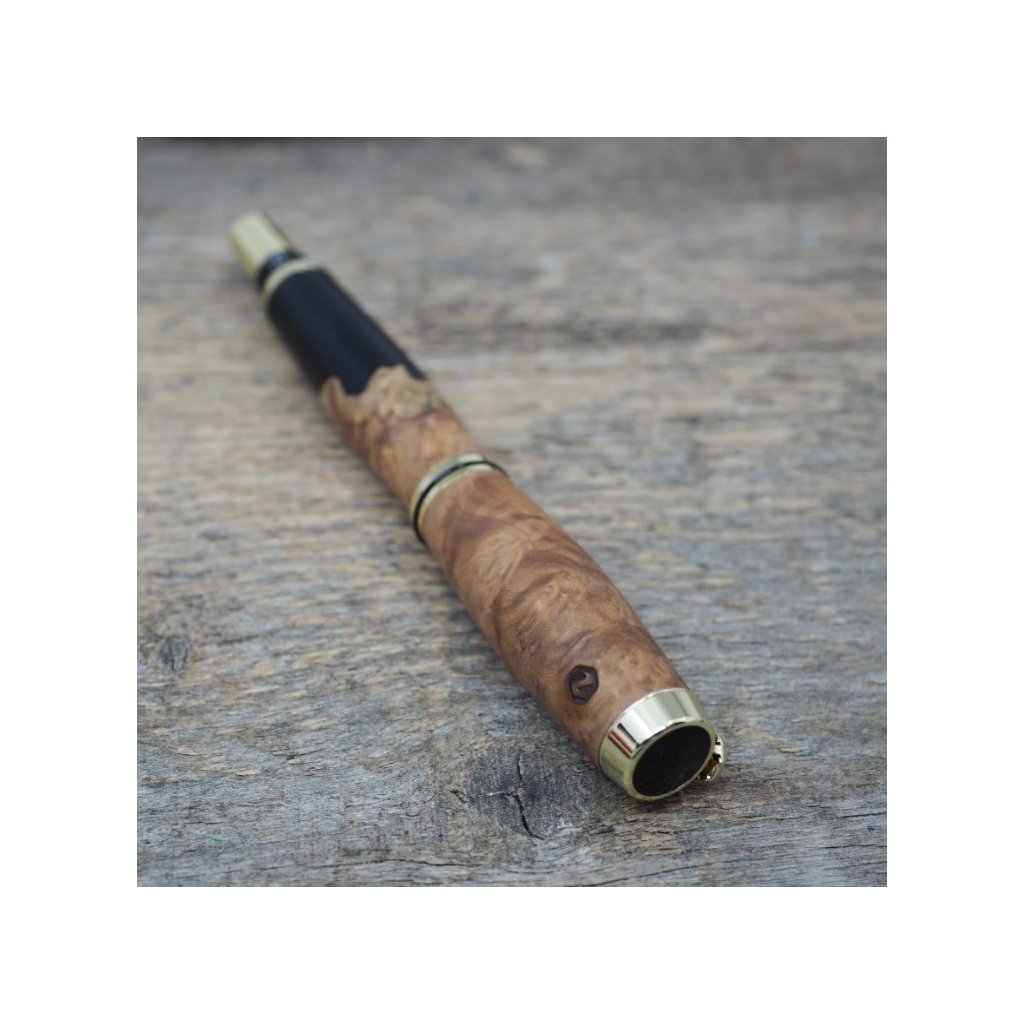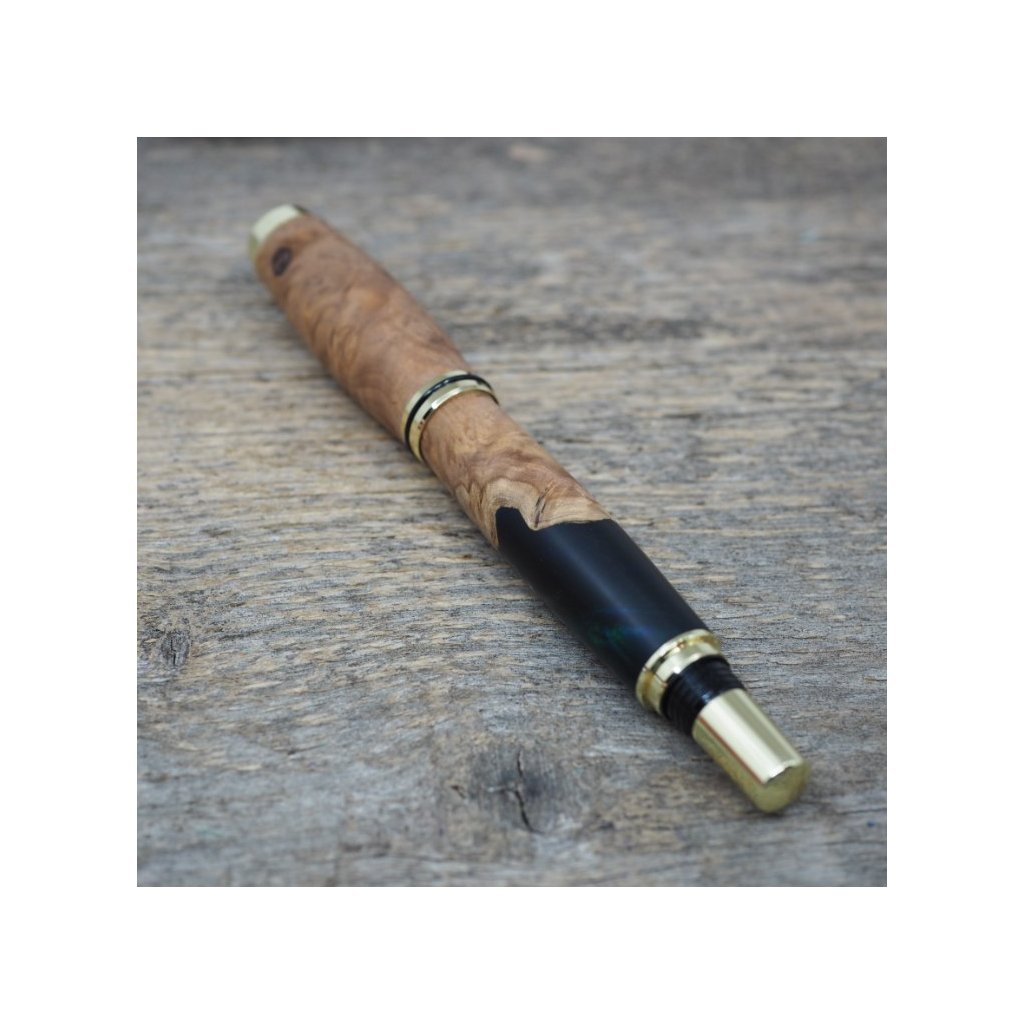 Luxusní ručně vyrobené plnicí pero Portland S ze stabilizovaného dřeva Javoru doplněného zeleno-černou pryskyřicí. Díky zastabilizování pryskyřicí se dřevo uzavřelo a dá se krásně vyleštit a je výrazně odolnější.